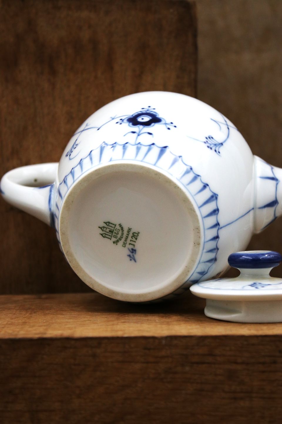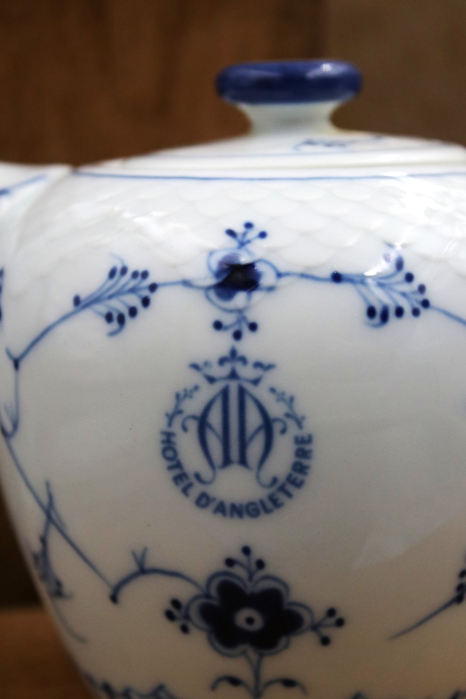 Bing & Grondahl Blue / Fluted teapot with logo from Hotel D`Angleterre...