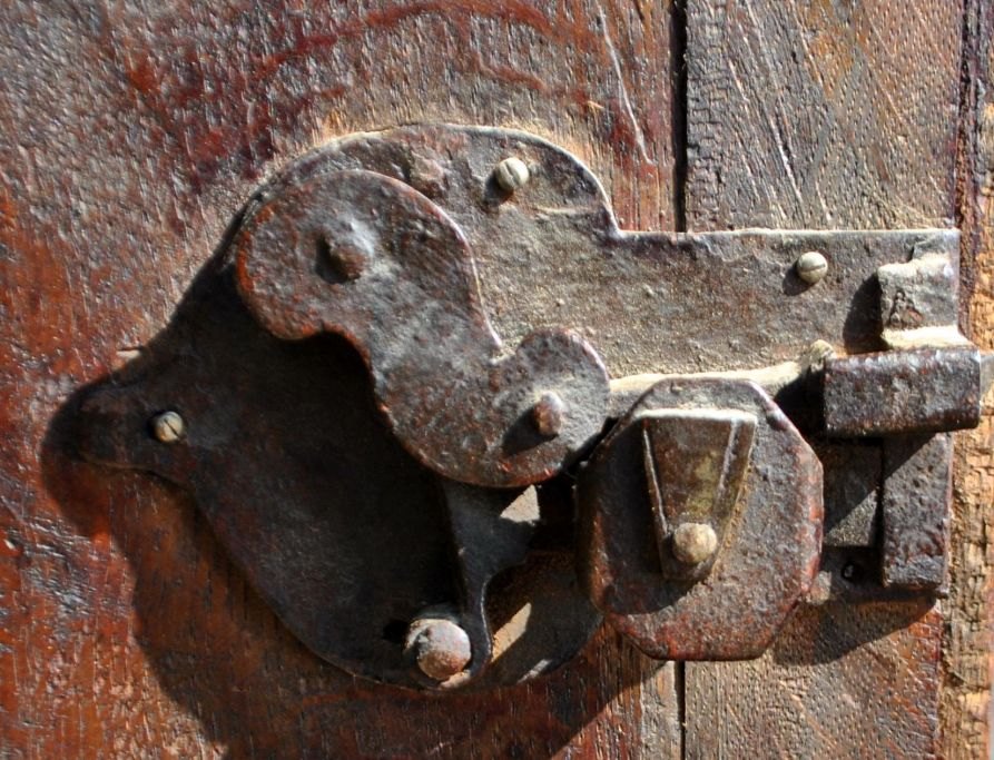 Antikt dansk barokt hængeskab i egetræ, 1700-tallet midte. Med antik lås og nøgle. Frontlåge med udskæring af De hellige Tre konger. Indvendig med to hylder og en skehylde foroven. H.: 70 cm., B.: 61 cm. D: 26 cm.