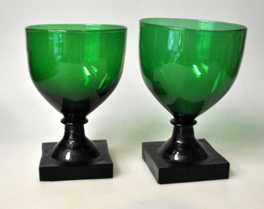 Gorm den Gamle vin glas, 19. årh. Hel grønt glas. Firkantet presset fod med mønster under bund og kugleslibning. Højde.: 13 cm.