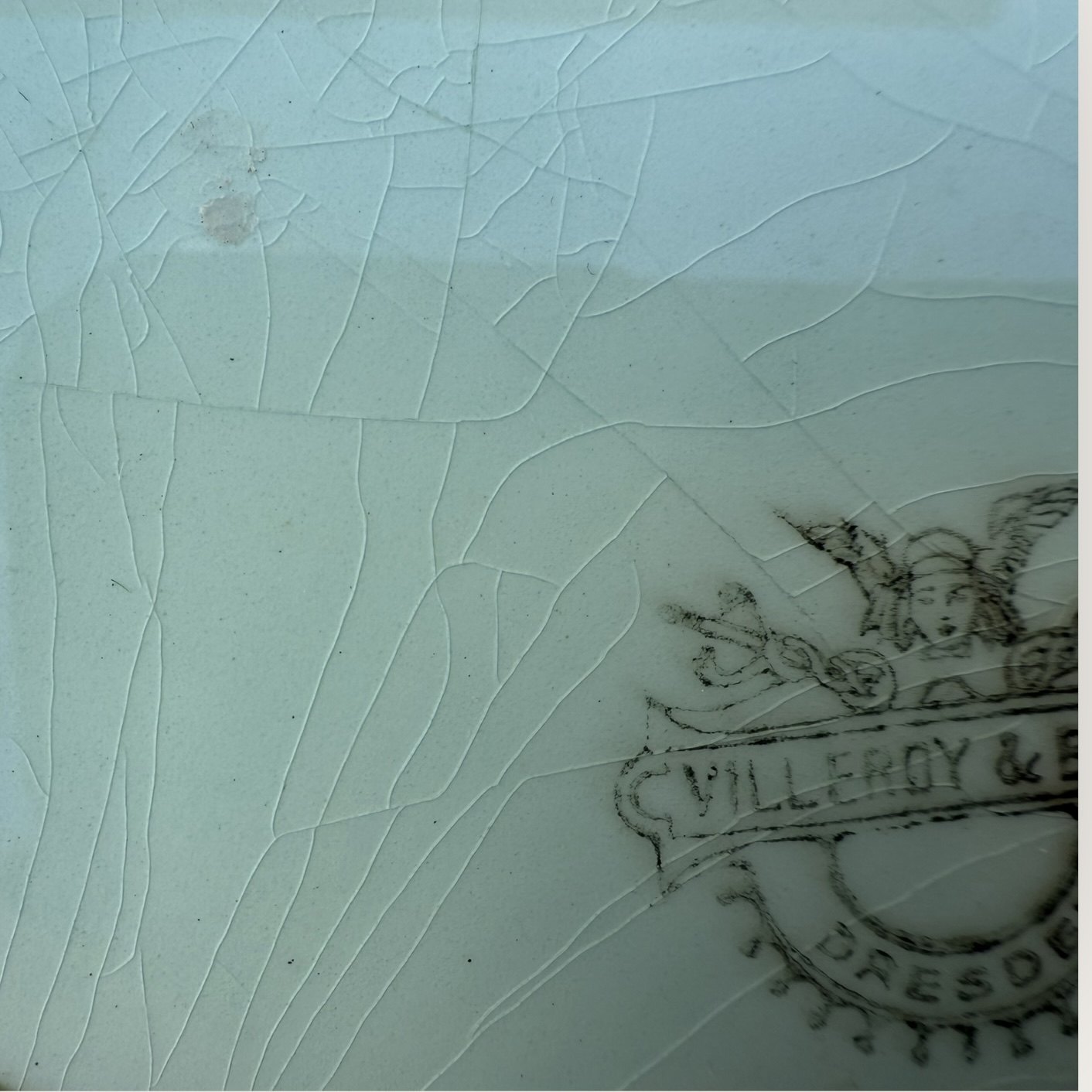 Villeroy & Boch, Flaskebakke / fad, diameter 17cm, Jugendstil / Art Nouveau i porcelæn og med sølvplet kant, lidt krakeleringer under glasuren (se foto) ellers pæn stand