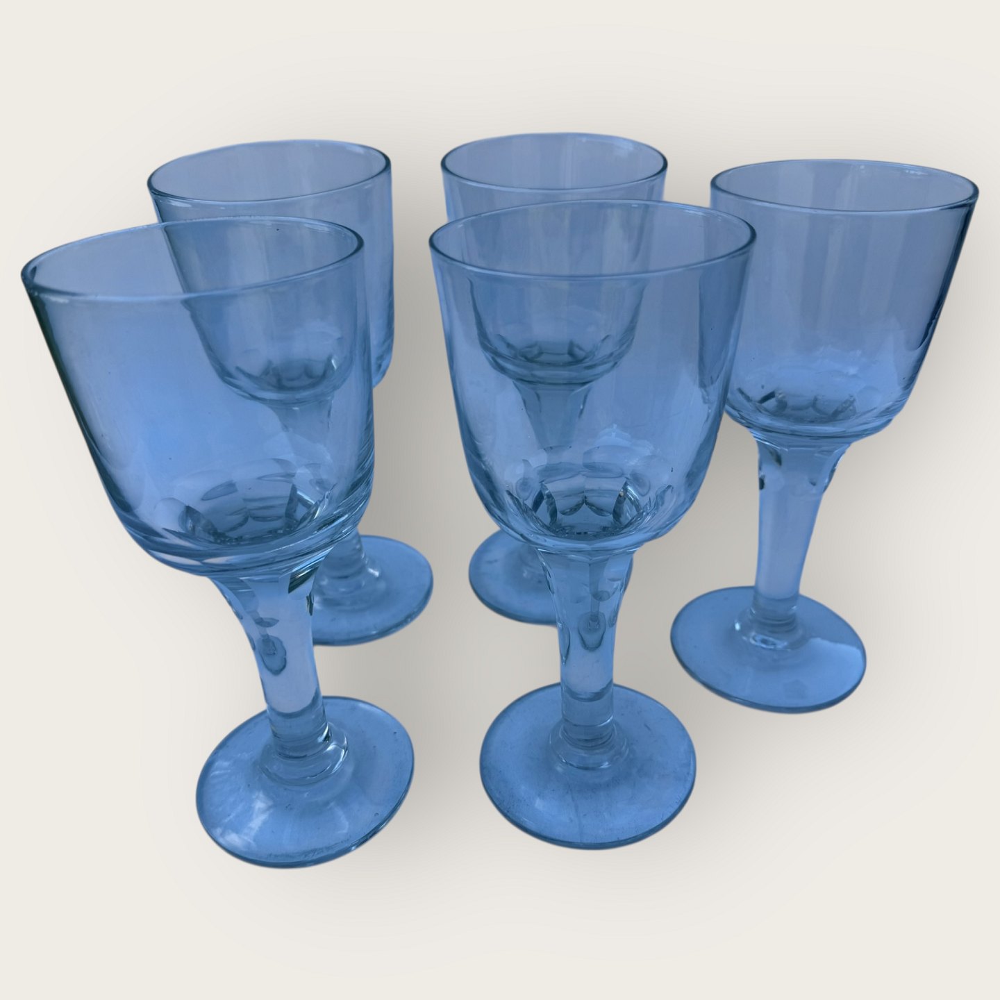 5 large older glasses with cut stems