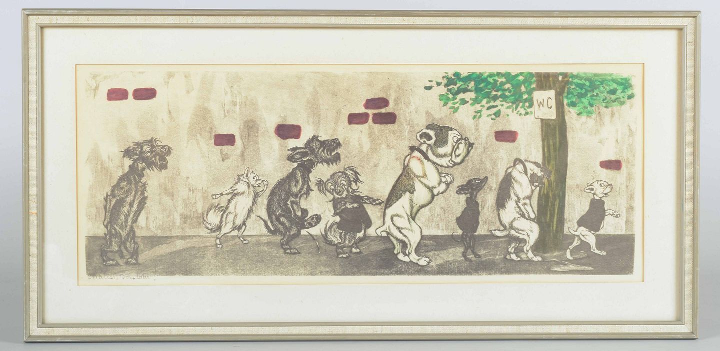 Et humoristisk motiv af den franske kunstner Boris O’ Klein, kendt for sine satiriske scener med hunde i menneskelige situationer. Værket viser en række hunde i kø foran et WC, udført med karikeret udtryk og let kolorering.