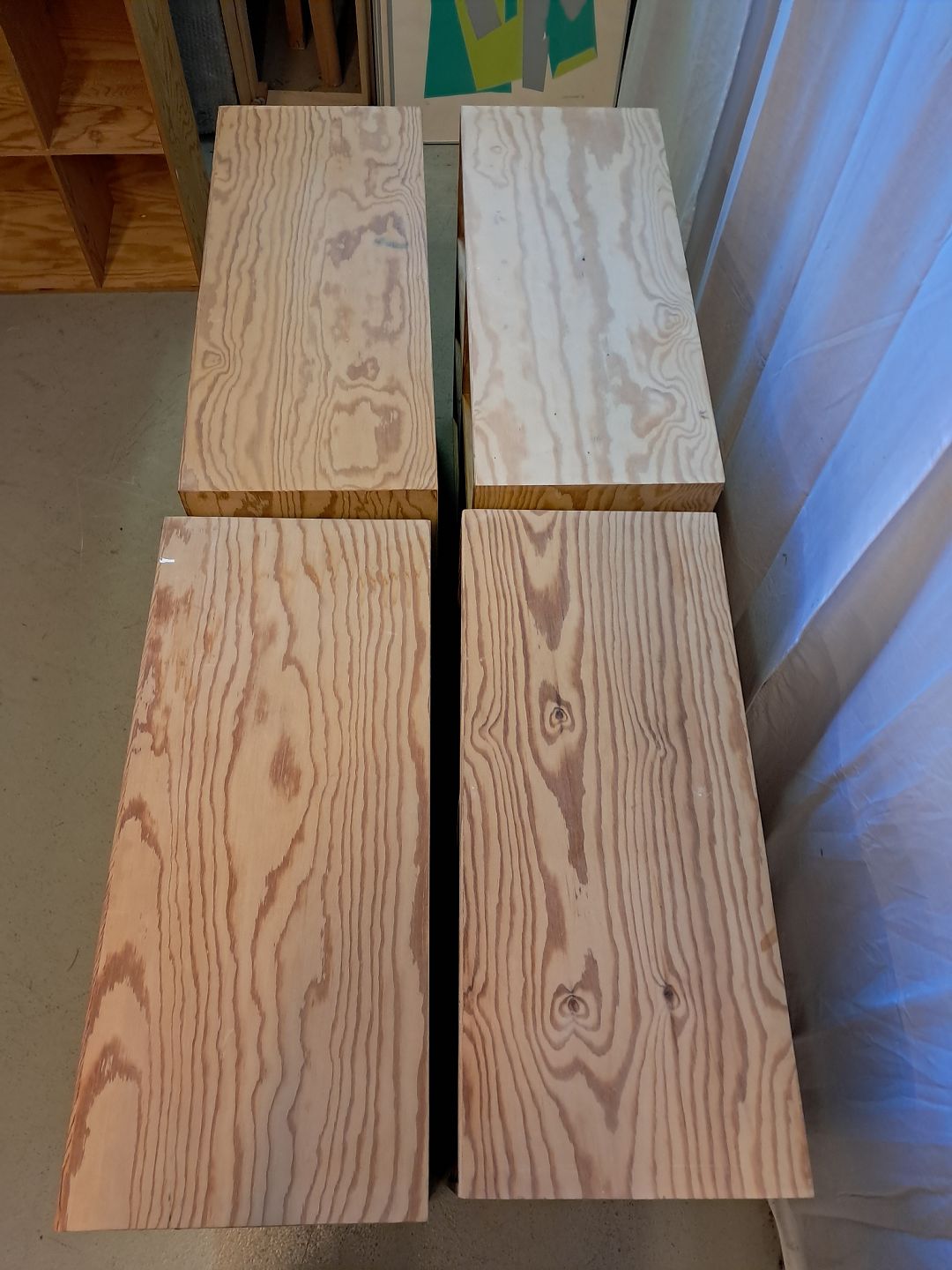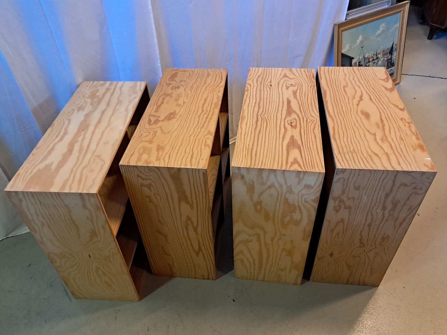 4 Reolkasser i krydsfiner, fra 2000erne.