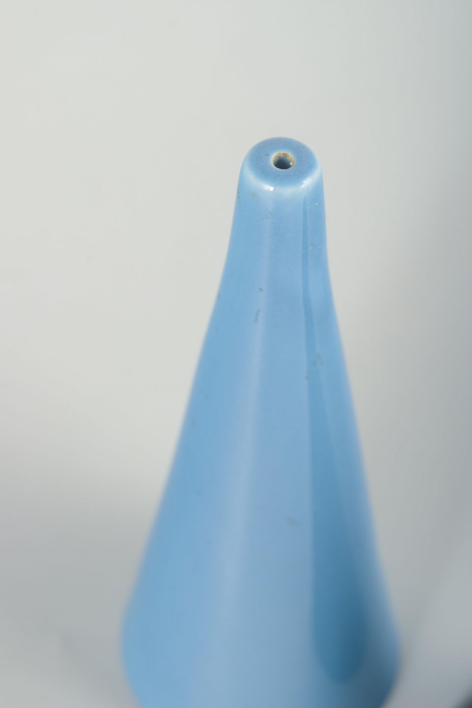 Par af kegleformede salt- og peberbøsser i glaseret fajance, i blå og sort glasur.