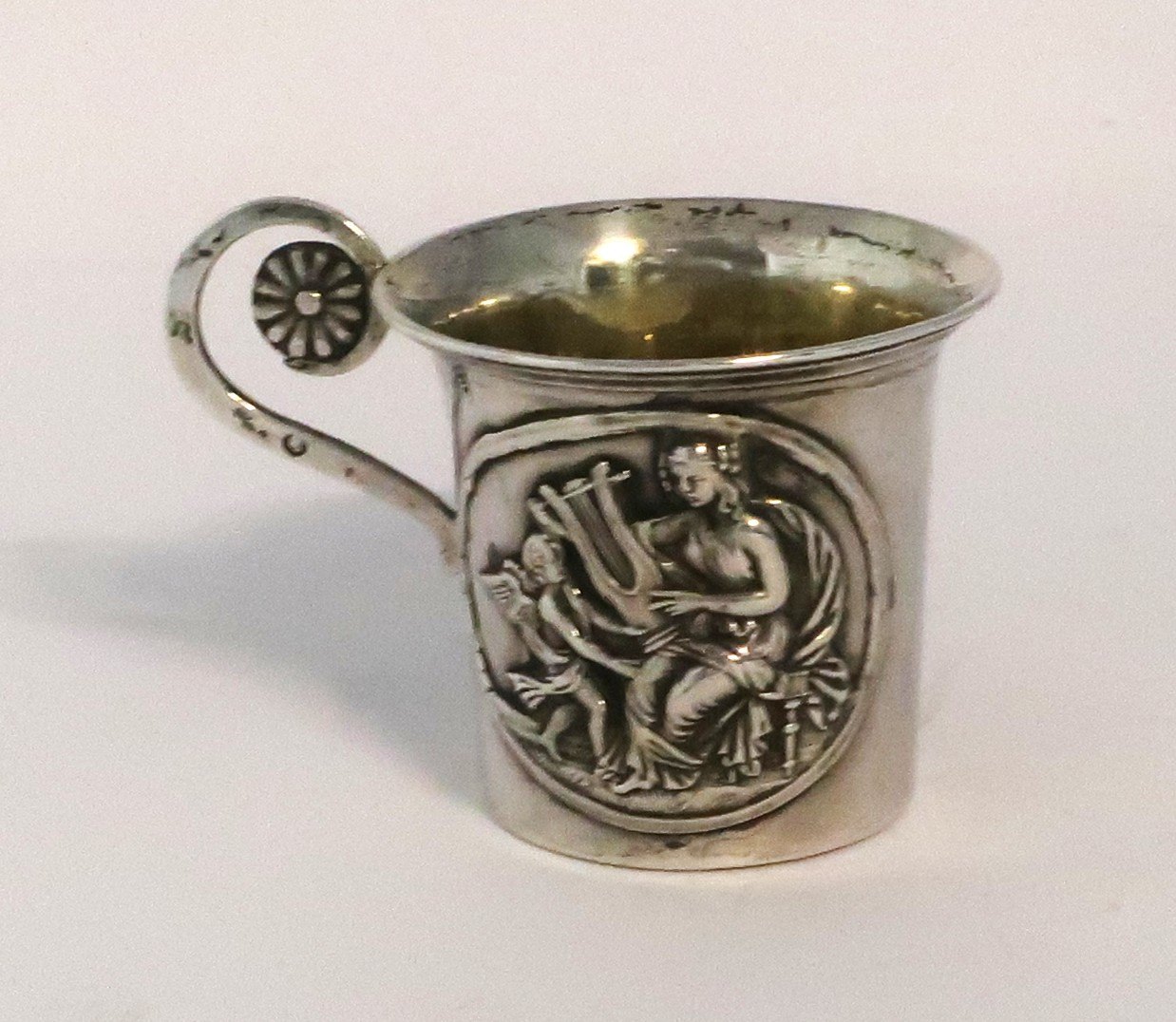 Russia. Silver cup with handle (84). Height 5 cm. Diameter 5.5 cm. Produced 1835