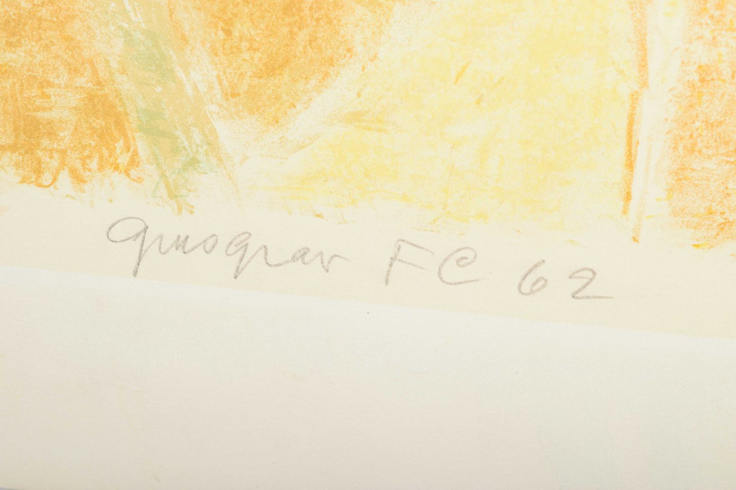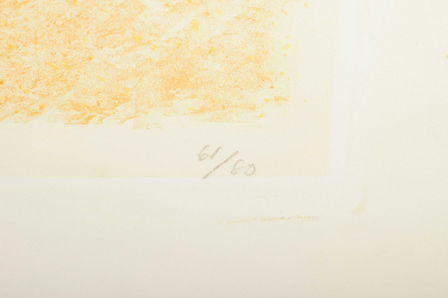 Et lyrisk-abstrakt værk i varme gule og orange nuancer, hvor flader og linjer danner en struktureret, men stadig organisk komposition. Værket er karakteristisk for Christoffersens grafiske arbejder fra begyndelsen af 1960’erne, hvor han eksperimenterede med farveflader og tekstur.