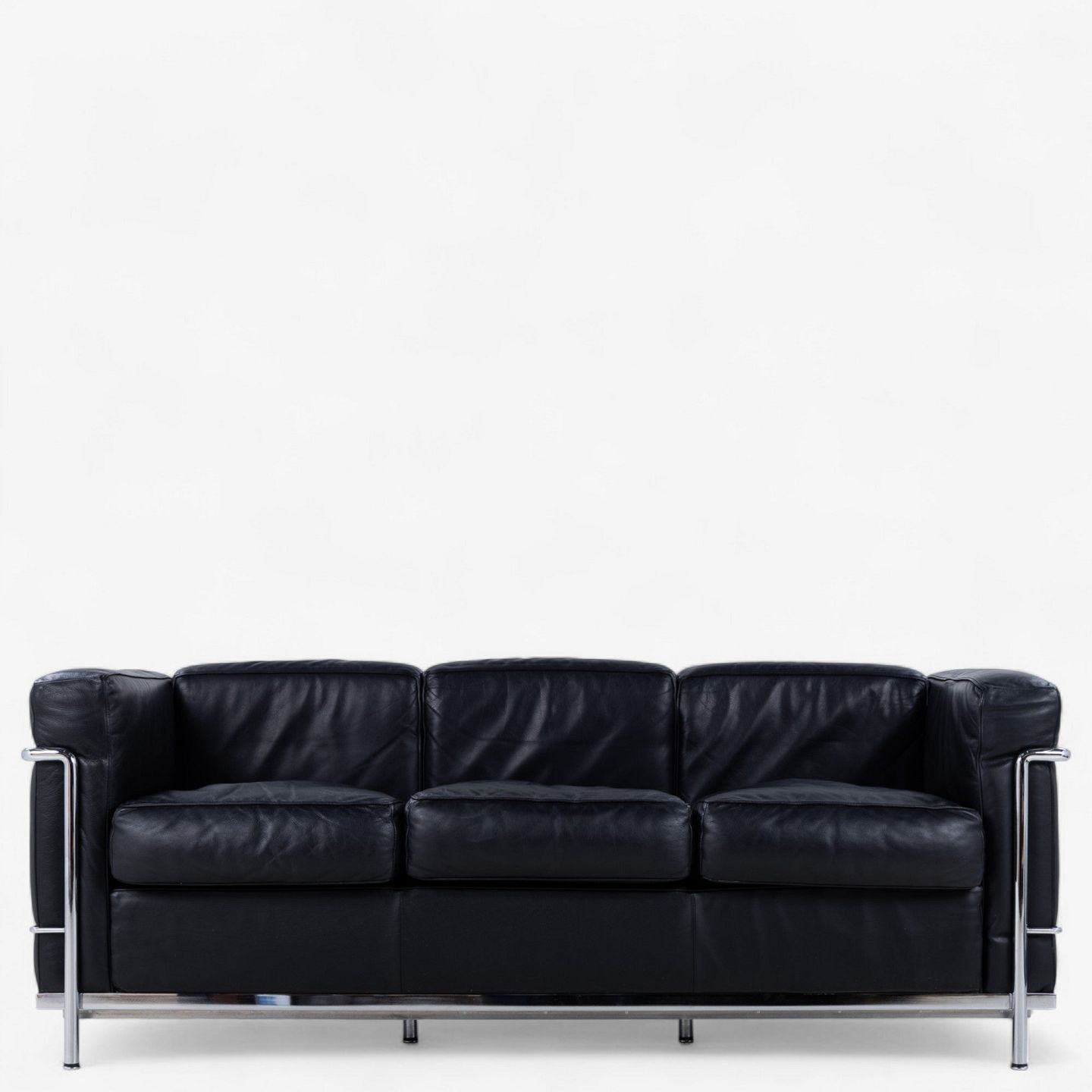 LC 2/3 - 3. pers sofa i originalt sort læder med stel i stål. Stemplet fra producent.