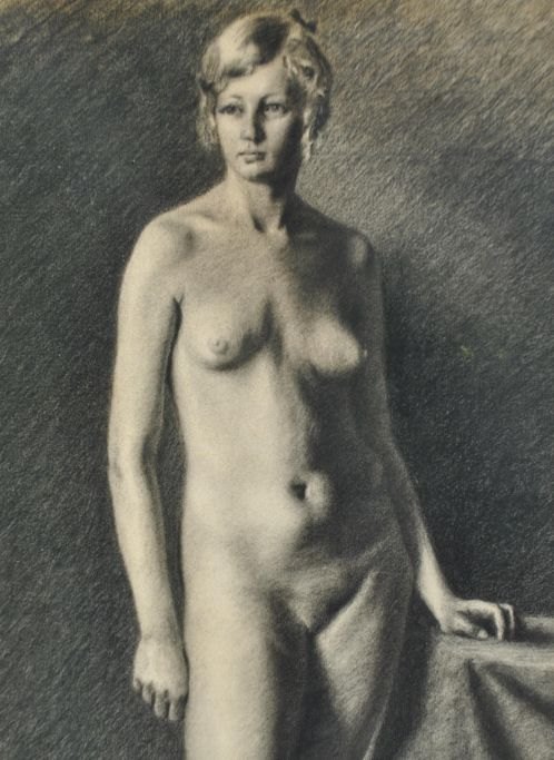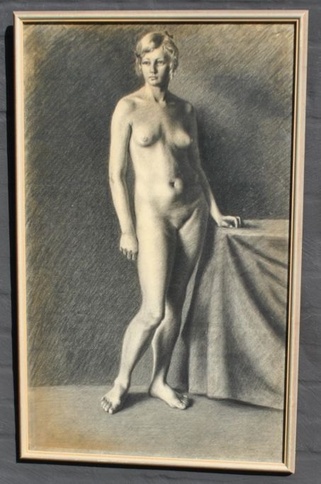 Dansk kunstner 20. årh.: En ung kvindelig model. Tegning på papir. Usigneret. 80 x 49 cm.