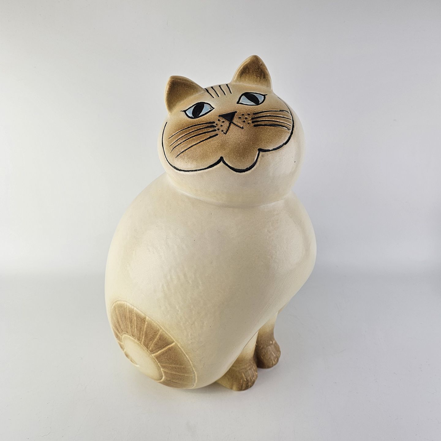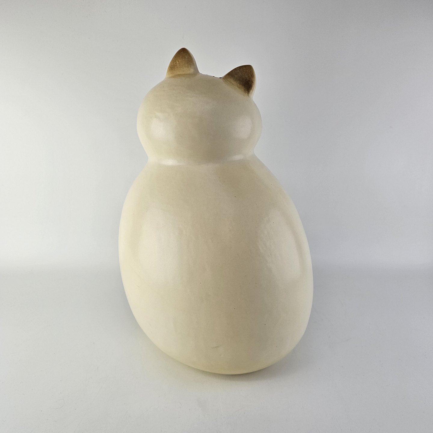 Figur i stentøj med motiv af en lys kat af modellen Mia fra år 2010