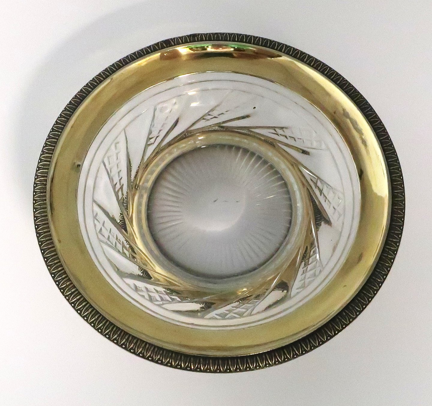 Fransk kop af krystal med sølv forgyldt montering. Kop og underkop. Højde 13 cm. Mindre kantafslag på undersiden af kop.