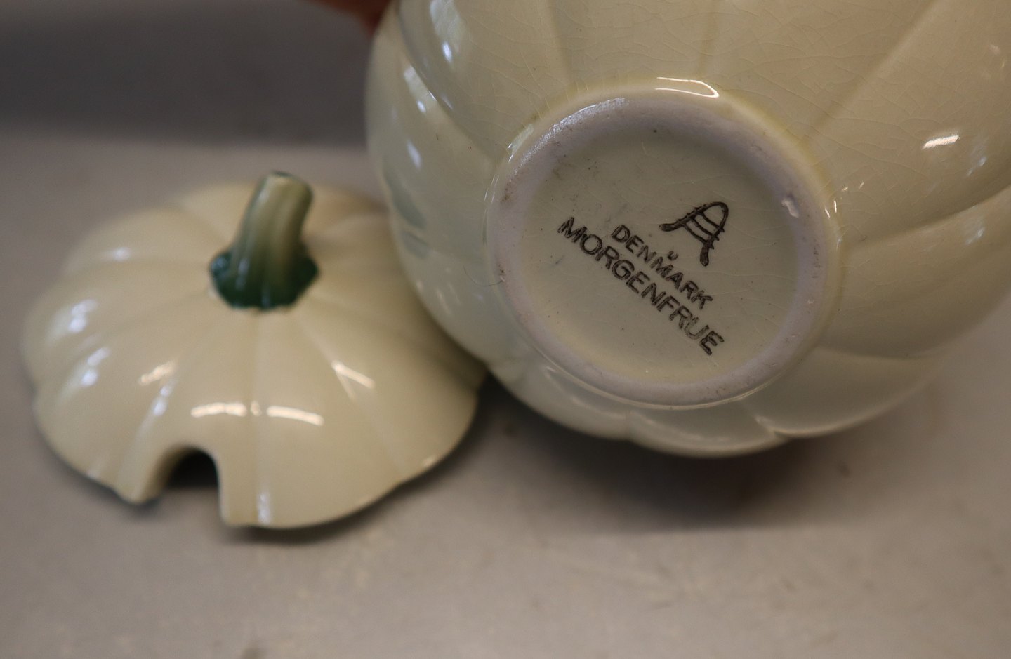 Græskarformet Marmeladeskål 11x12.5cm Royal Copenhagen Aluminia fajance Morgenfrue Stellet Sukkerskål
