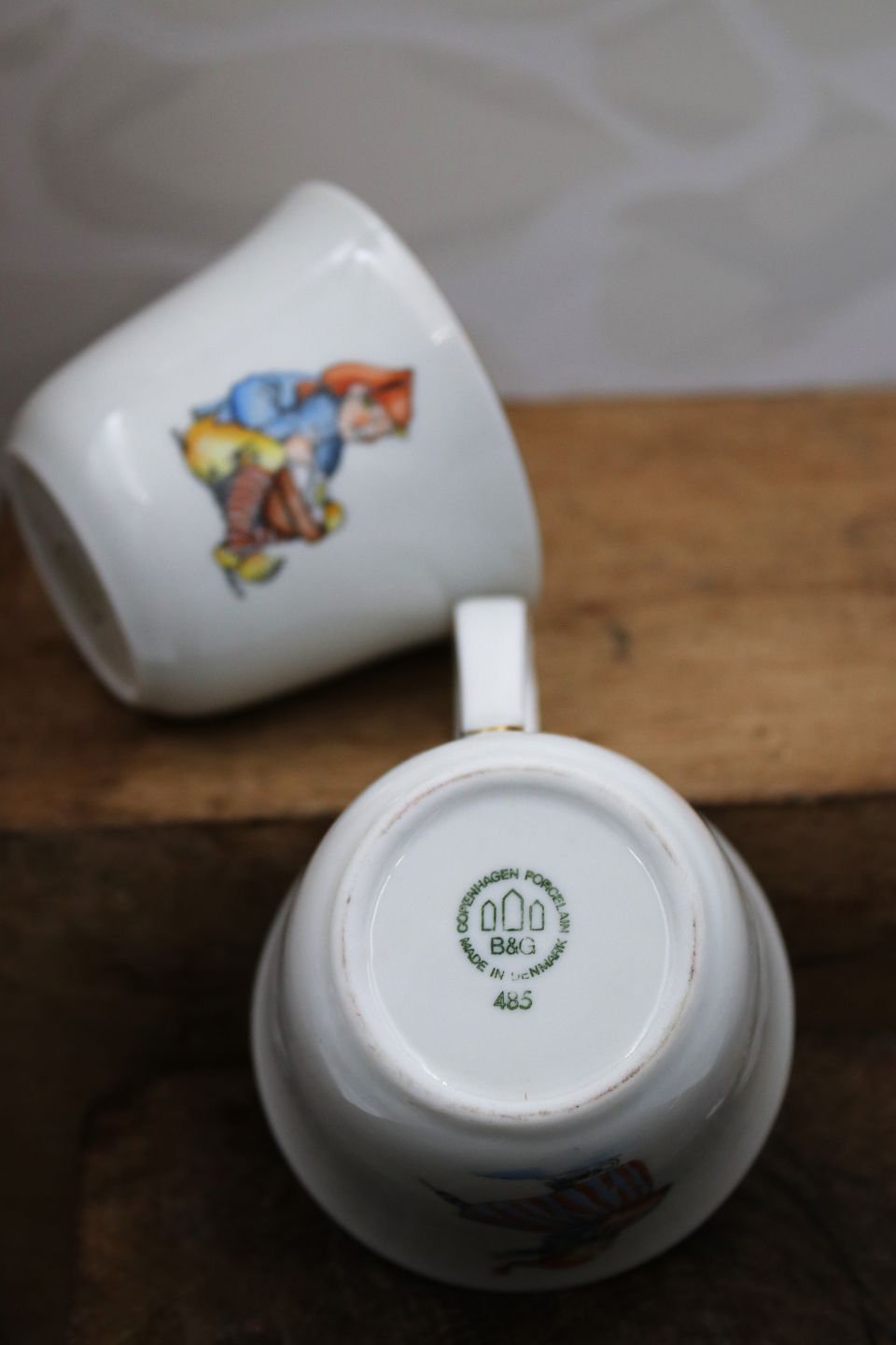 Bing & Grøndahl høj hanks kopper med julemotiver og guldkant.