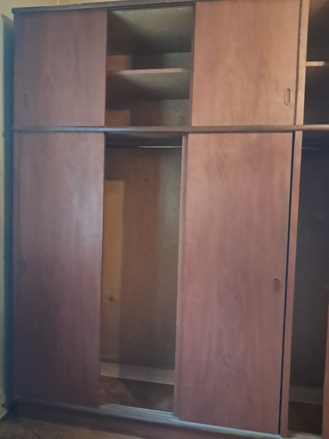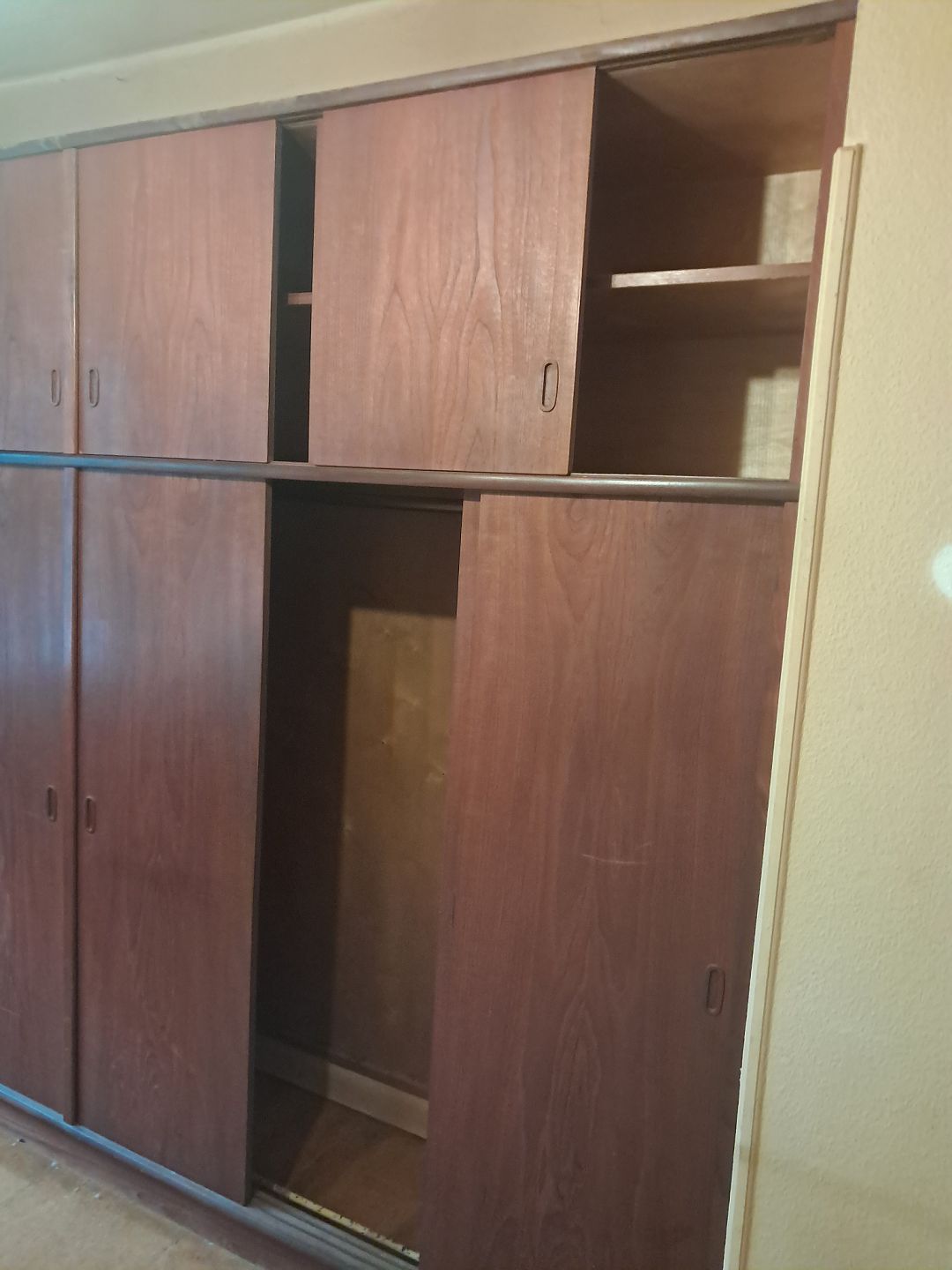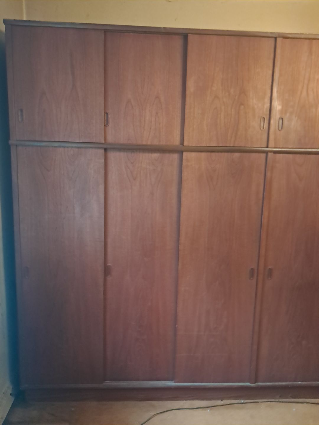 6 Dørs-klædeskab i fineret teaktræ, fra 1960erne.