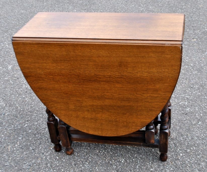 Engelsk gateleg bord i ege træ, 19. årh. Med drejede ben. H.: 74 cm. B.: 75,5 cm. D: 30 cm. Udslået: 133 cm.