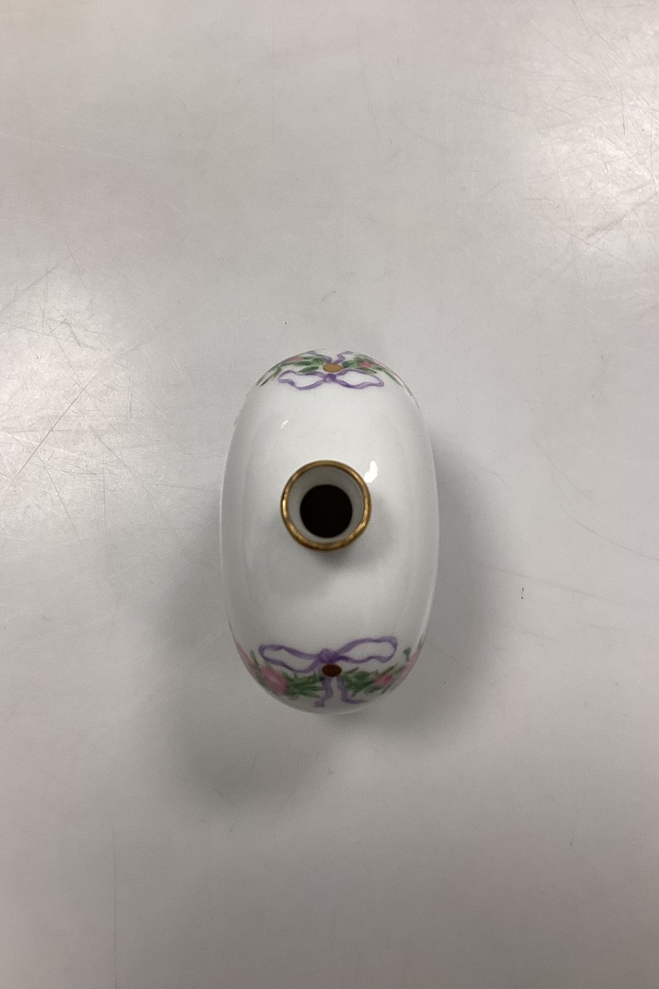 Royal Copenhagen Privatmalet Vase. Motiv med lyserød rosenguirlande. Indskrift i bunden: Juleaften 1906, GS. Måler 10 cm / 3,93 in.