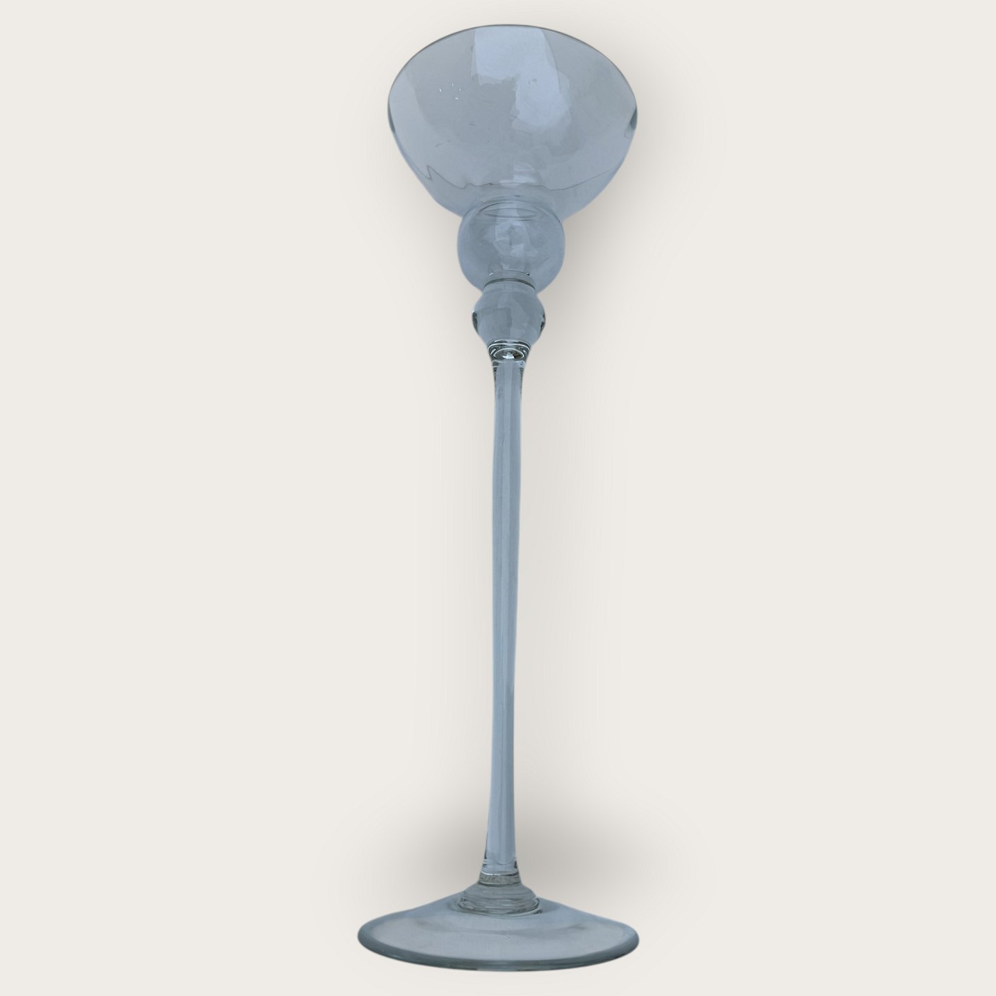 Høj glas lysestage, 35cm høj, diameter øverst 12cm, fin stand