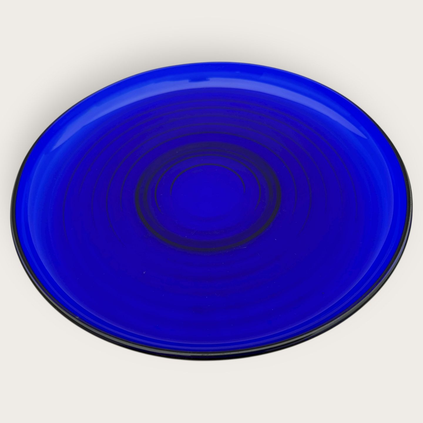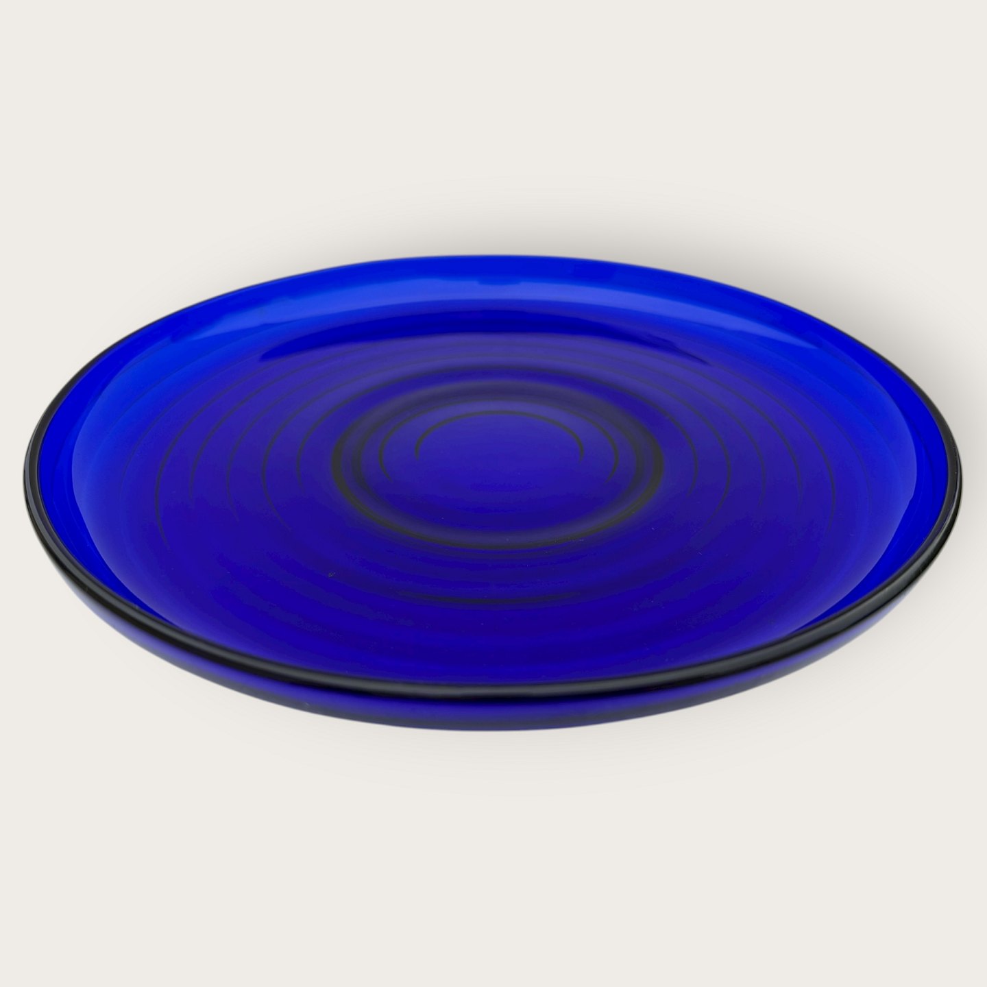 Holmegaard, Broksø, Presset glas, Blåt fad 28cm i diameter, design Jacob E. bang *Pæn stand*