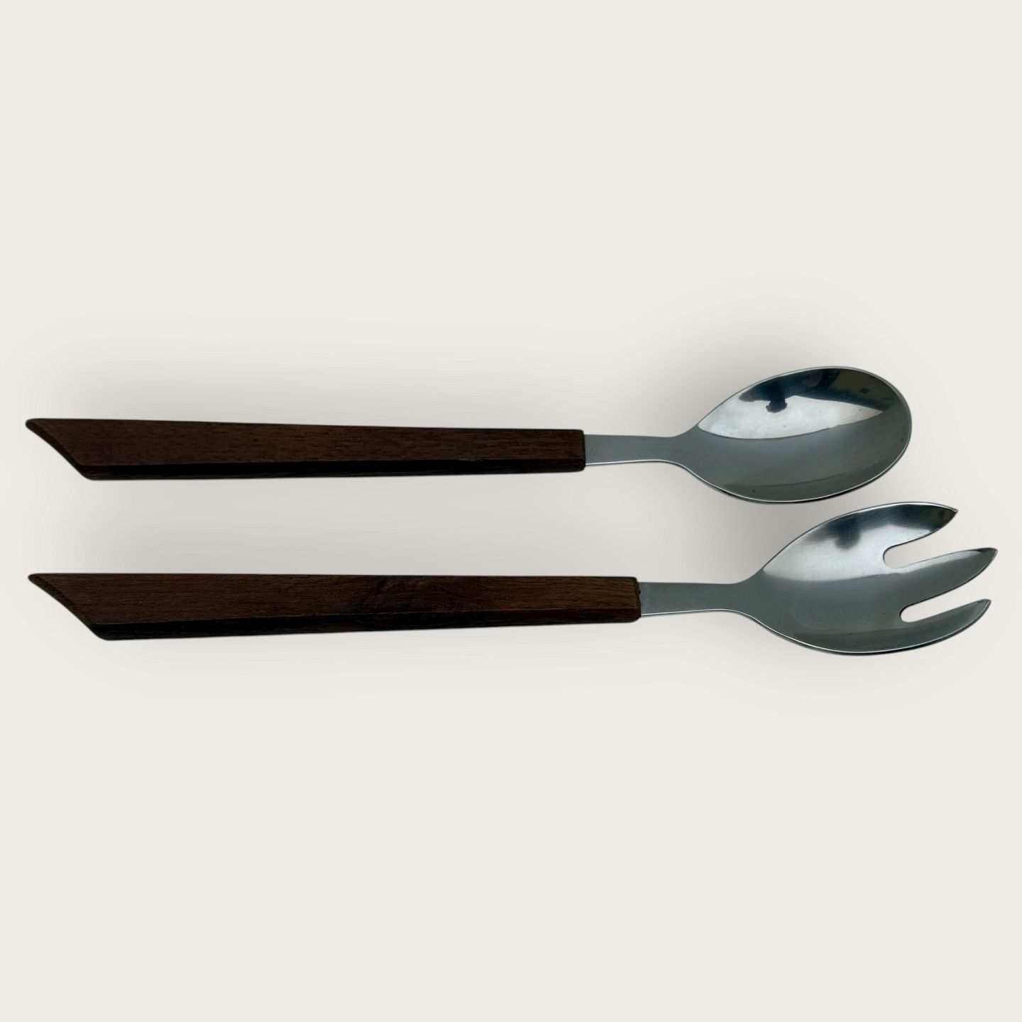 Con Form, Salatsæt i teaktræ og stål fra 1960'erne, i originalæske, 26,5cm langt *Æske noget slidt ellers fin stand*