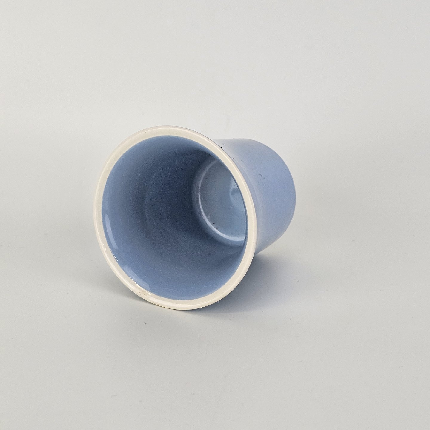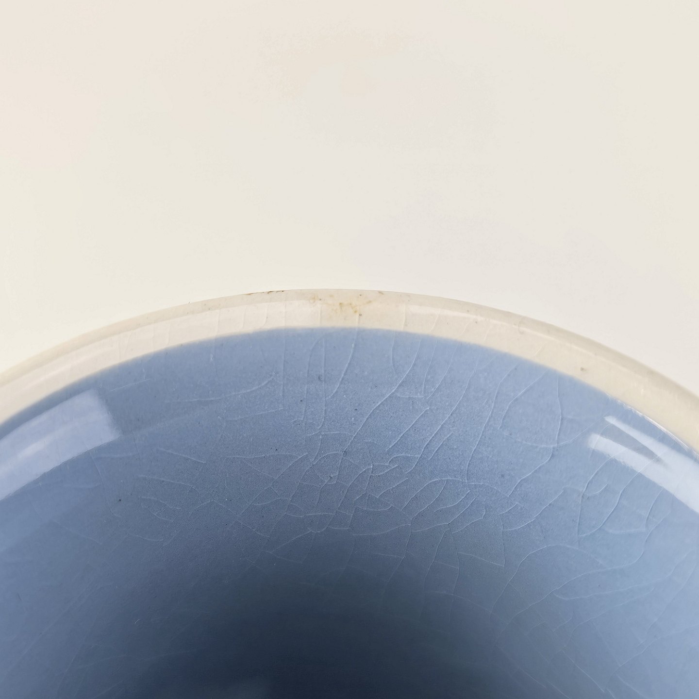 Fremstår med krakeleringer i glasuren og små prikker i bunden