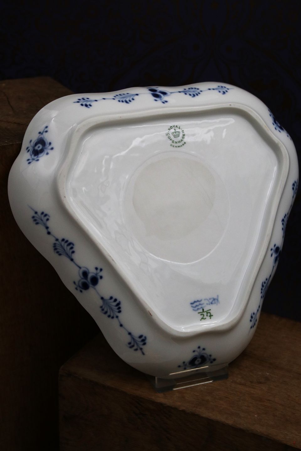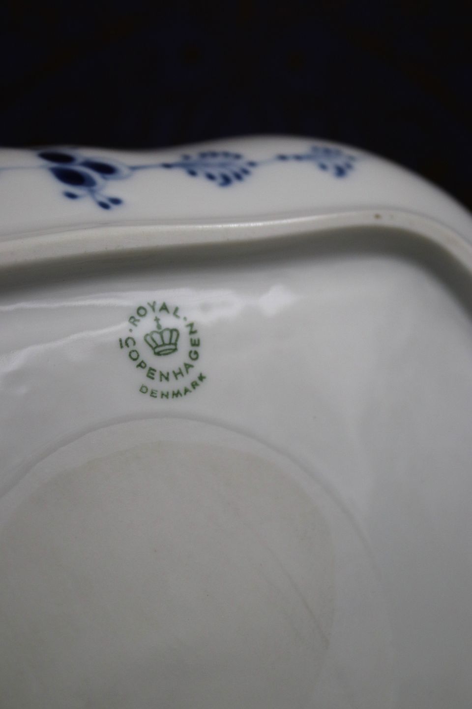 3 kantet kagefad / salatfad i Musselmalet Riflet fra Royal Copenhagen.