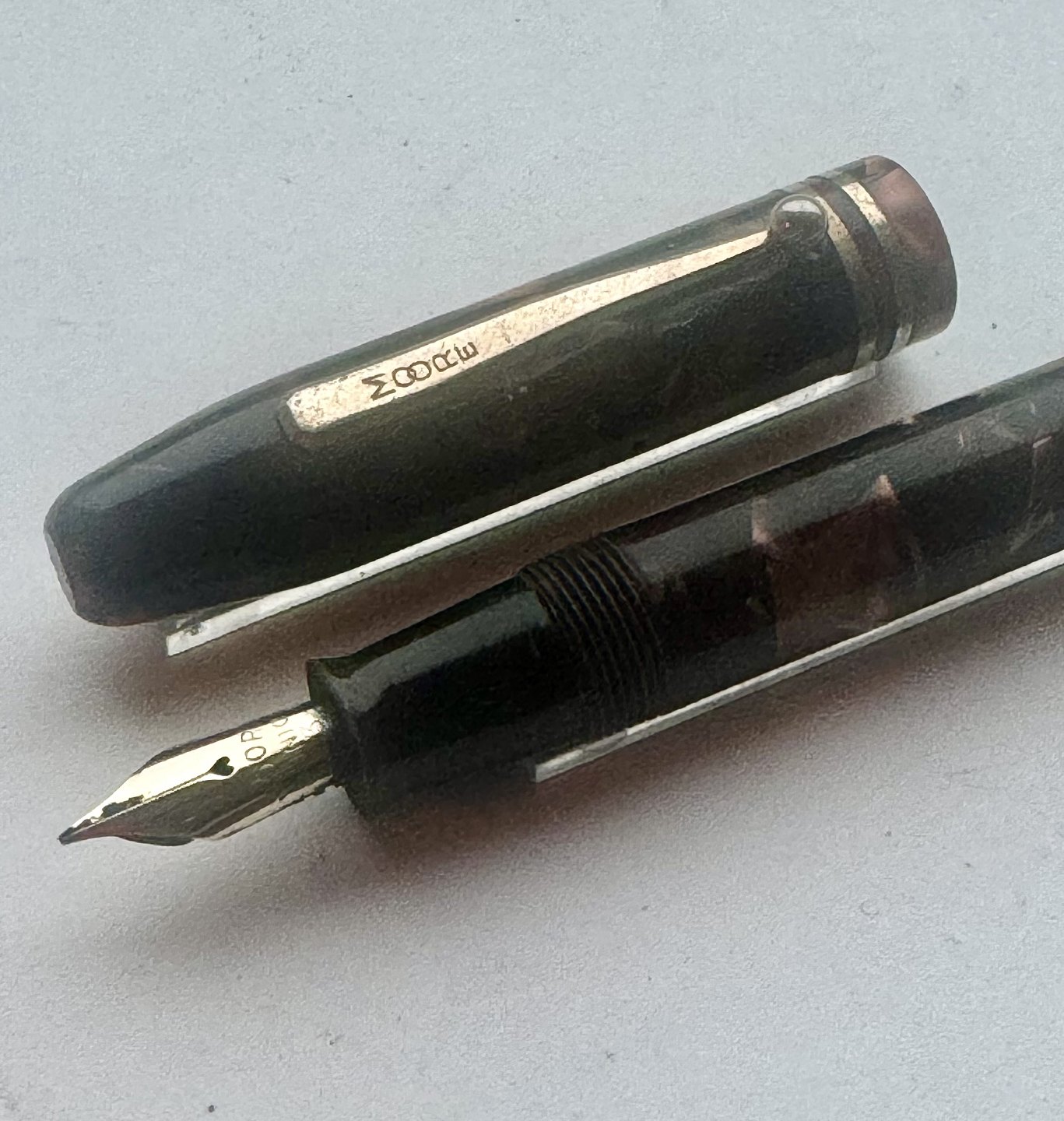Grøn marmoreret fyldepen fra The Moore Pen Co.