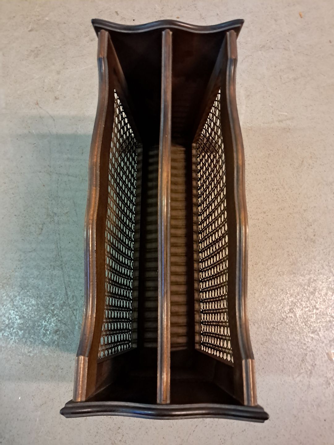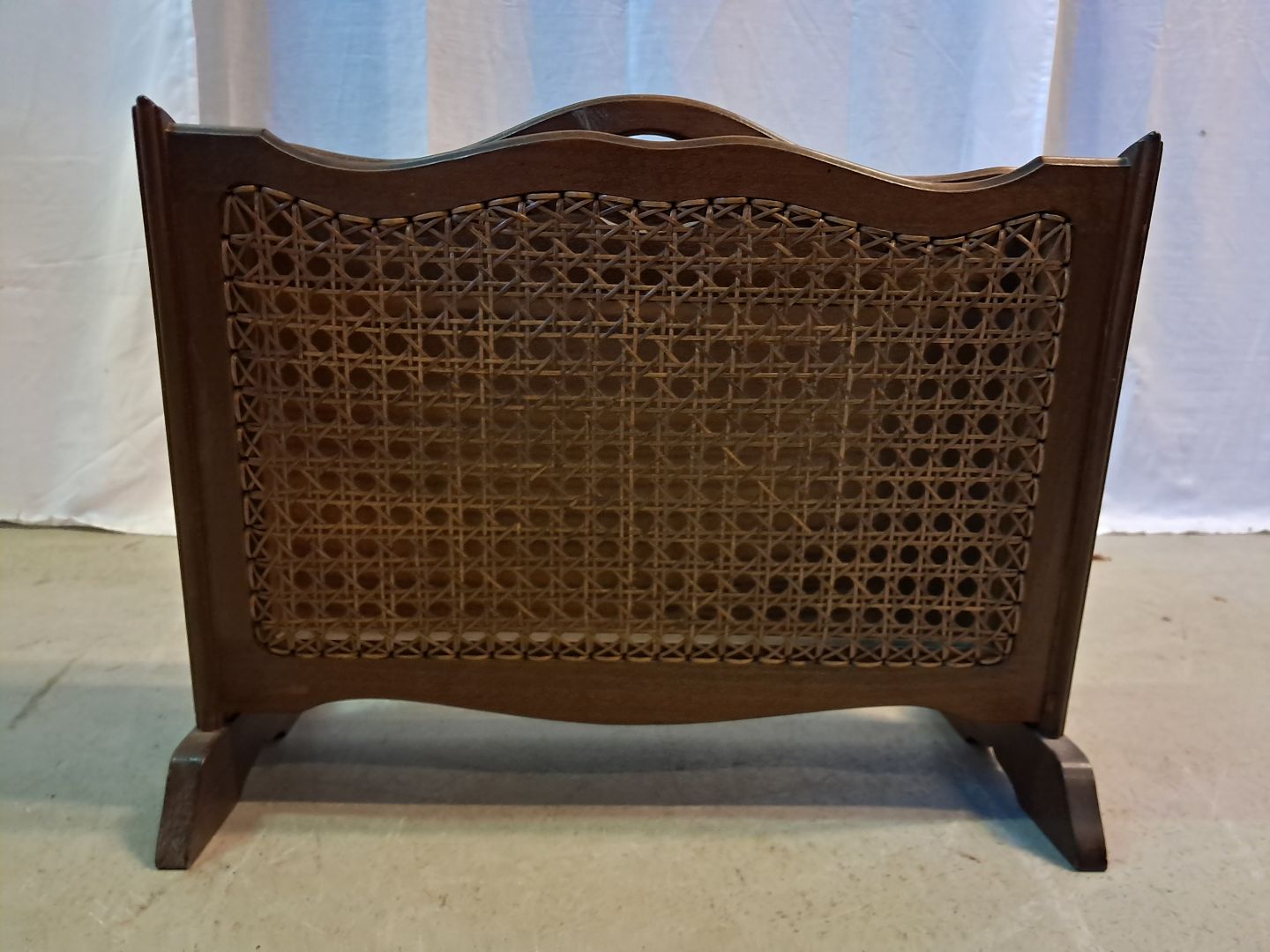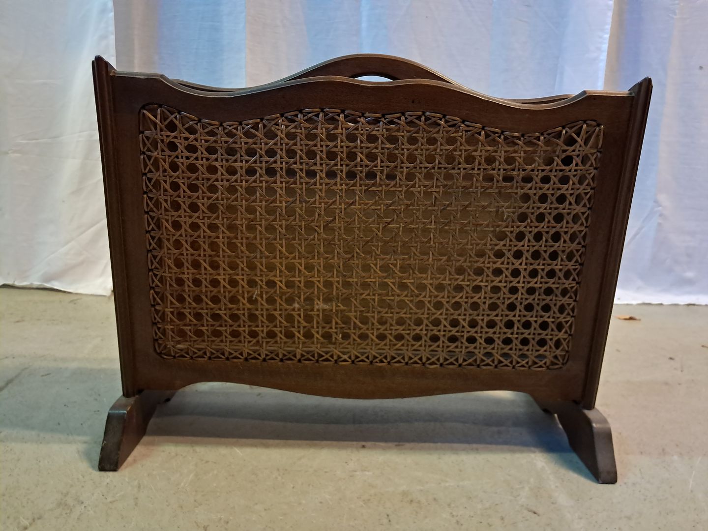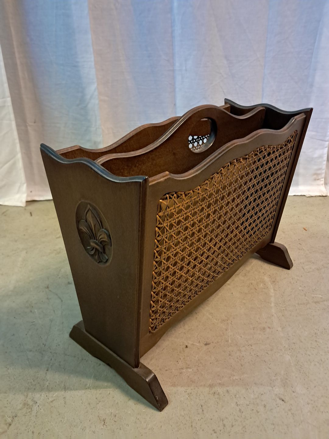 Avisholder i massivt bøgetræ med rørflet, fra 1980erne.