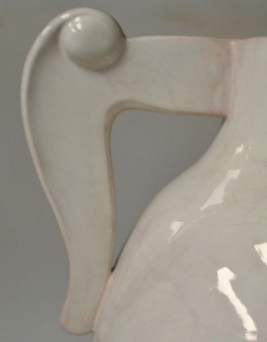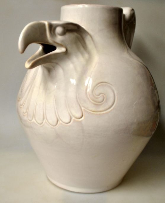 Hansen Reistrup, Karl (1863 - 1929) Danmark: Ørnekande af lertøj. Fremstillet hos H.A. Kähler, Næstved. Hvidglaseret. Med specielt designet håndtag. Signeret: KHR og HAK. H.: 32,5 cm. B.: 35 cm.