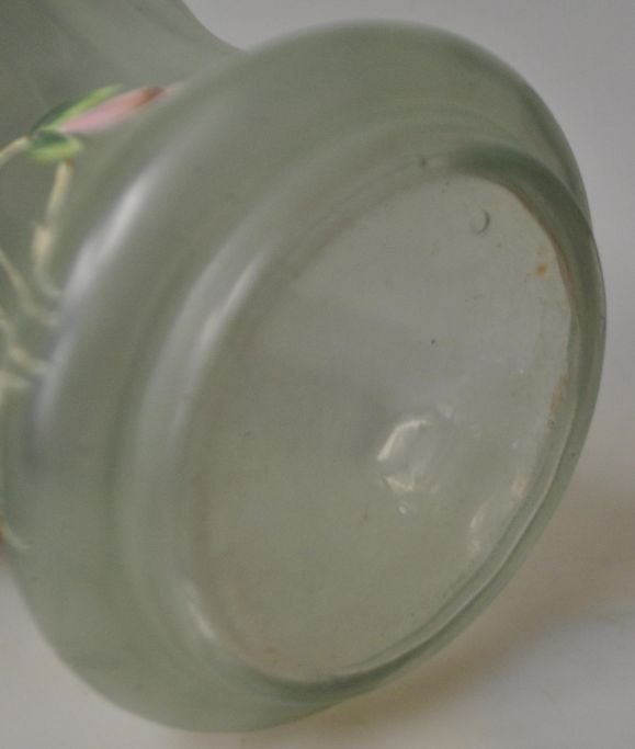 Bisquit spand, lys grønt glas med emaljebemalinger, jugend stil ca. 1900, Tyskland.