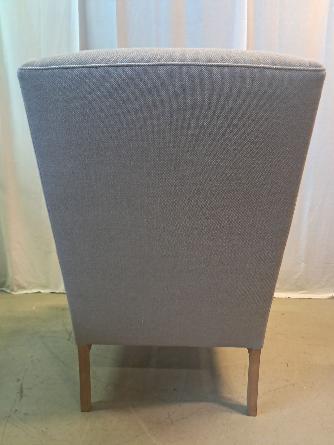 Lænestol med stofbetræk og ben i egetræ, fra 2000erne.