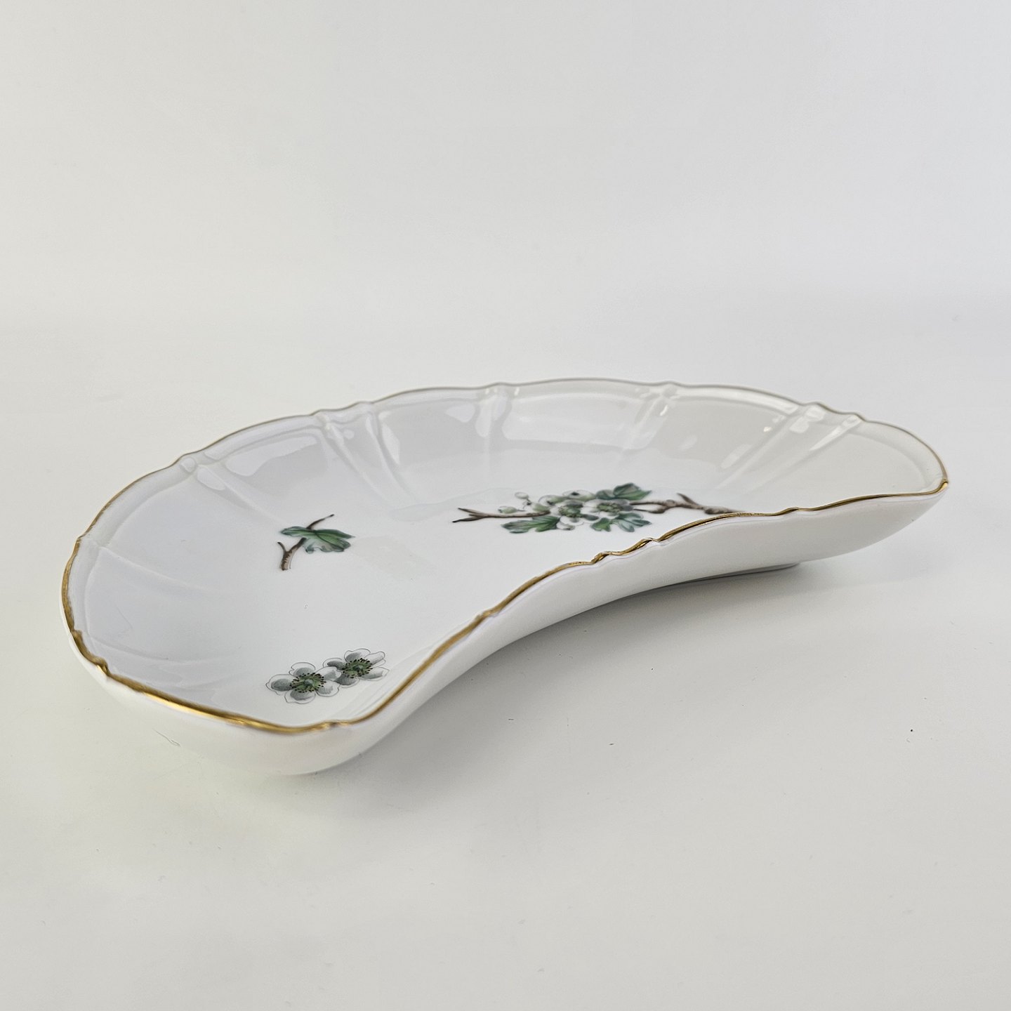 Halvmåneformet fad i porcelæn fra stellet Eremitage