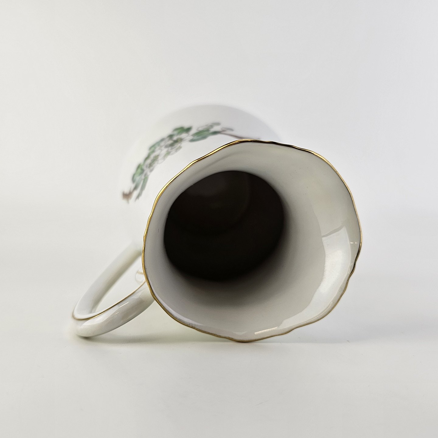 Eremitage er porcelæn dekoreret med hvidtjørn og guldkant