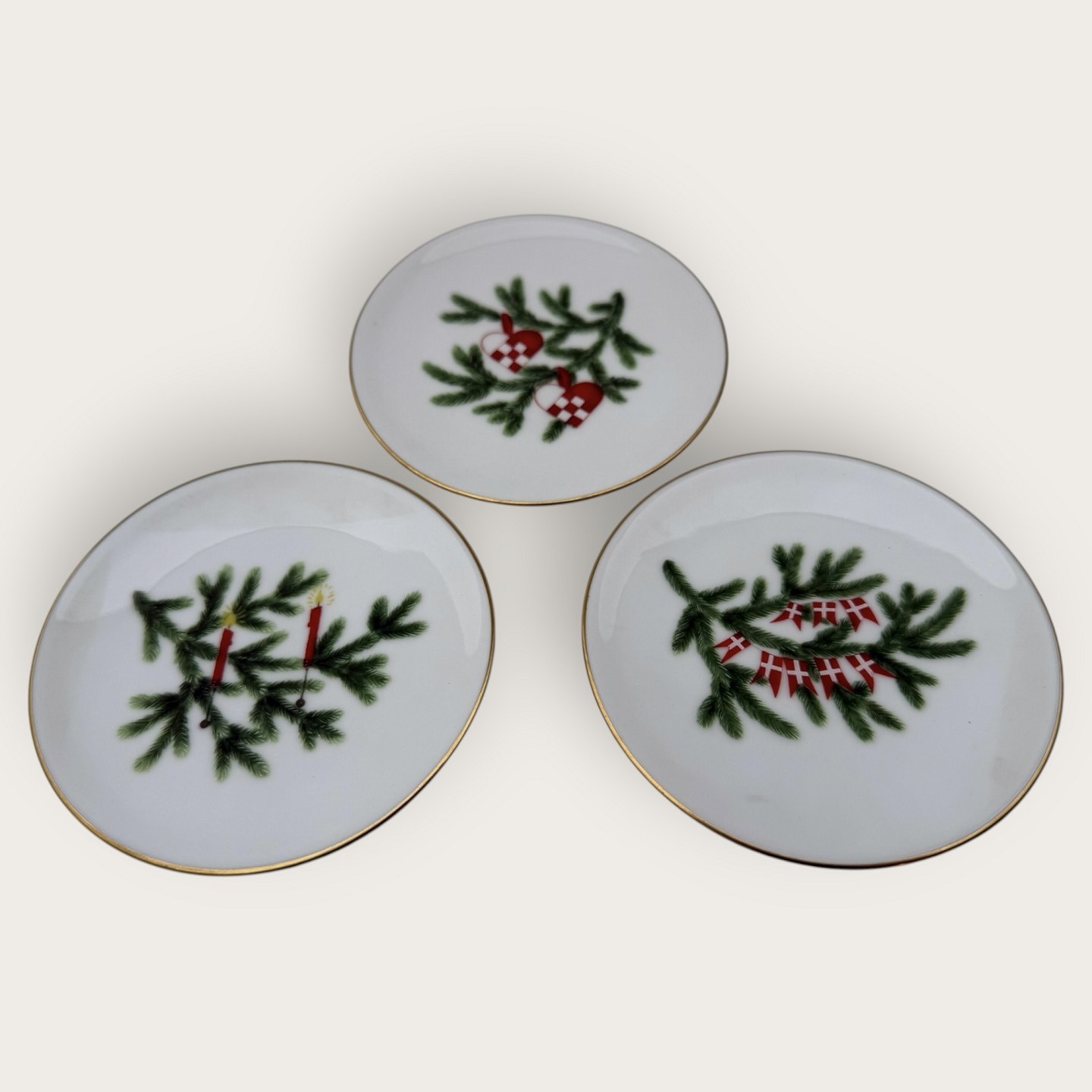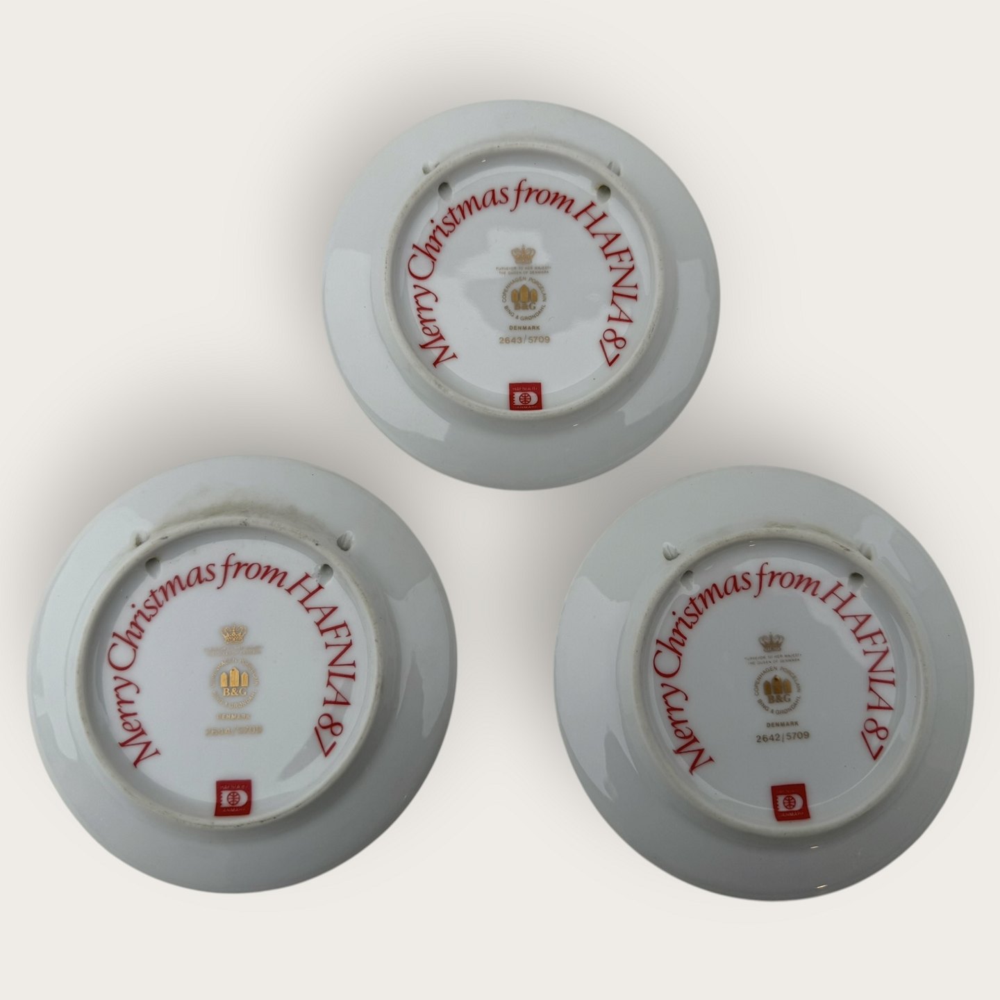 | Bing & Grøndahl, 3 små juleplatter, Merry Christmas Hafnia 87, #2642/5709, 2643/5709 og 2644/5709, diameter 10,5cm, 1. sortering *fin stand*