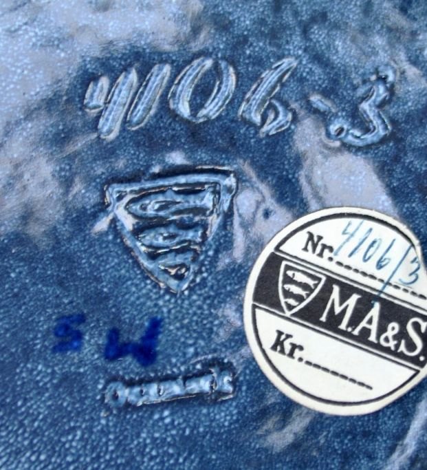 Michael Andersen & Søn keramik fad nr. 4106-3, Bornholm, Danmark, efter 1930.