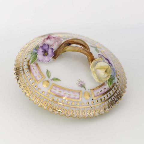 Låg til cremekop i porcelæn fra stellet Flora Danica. Nr 20/3514