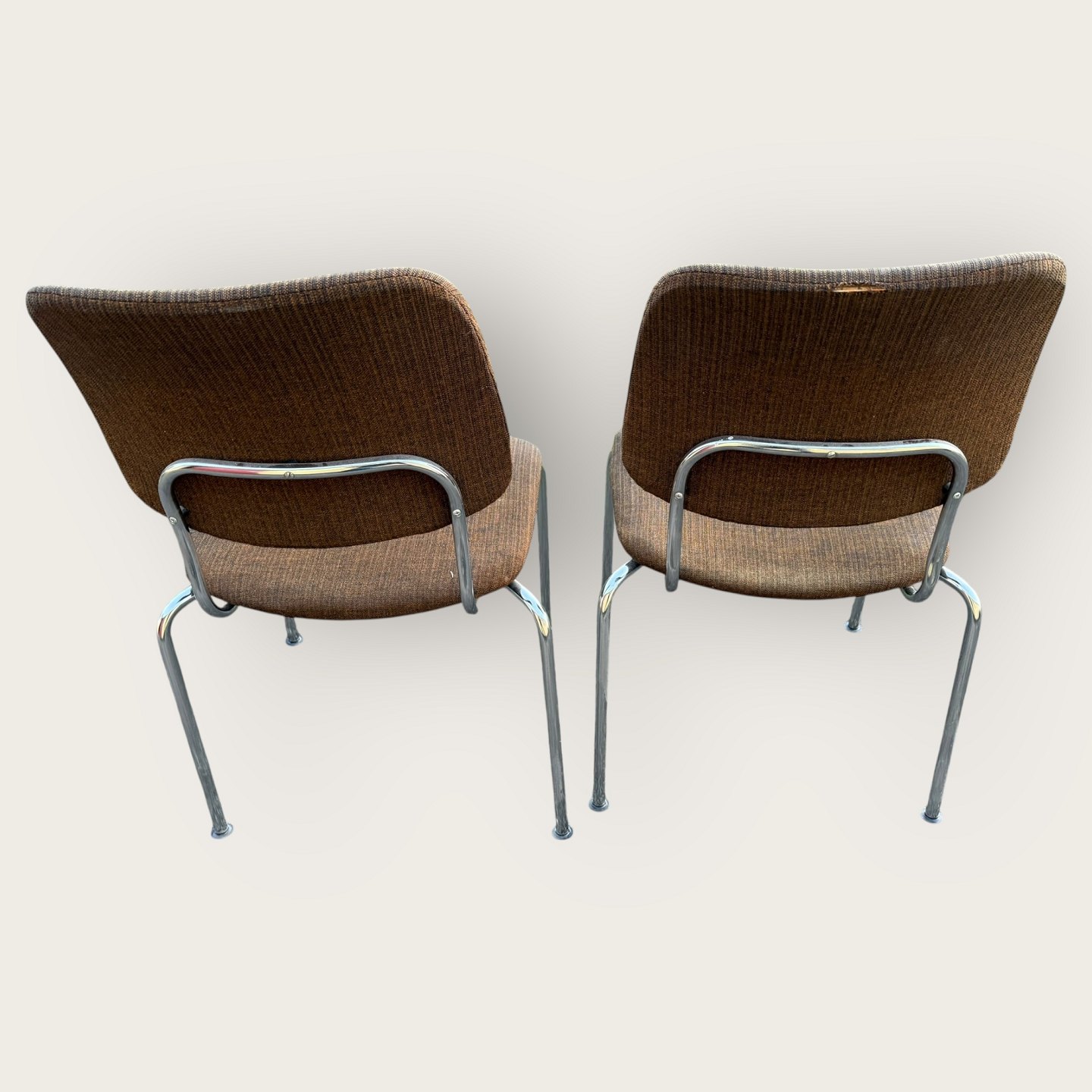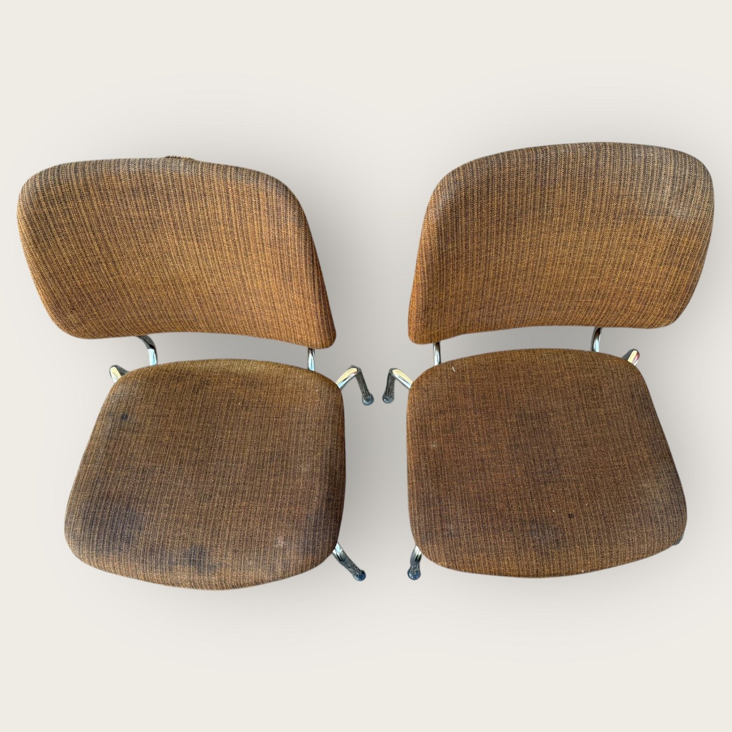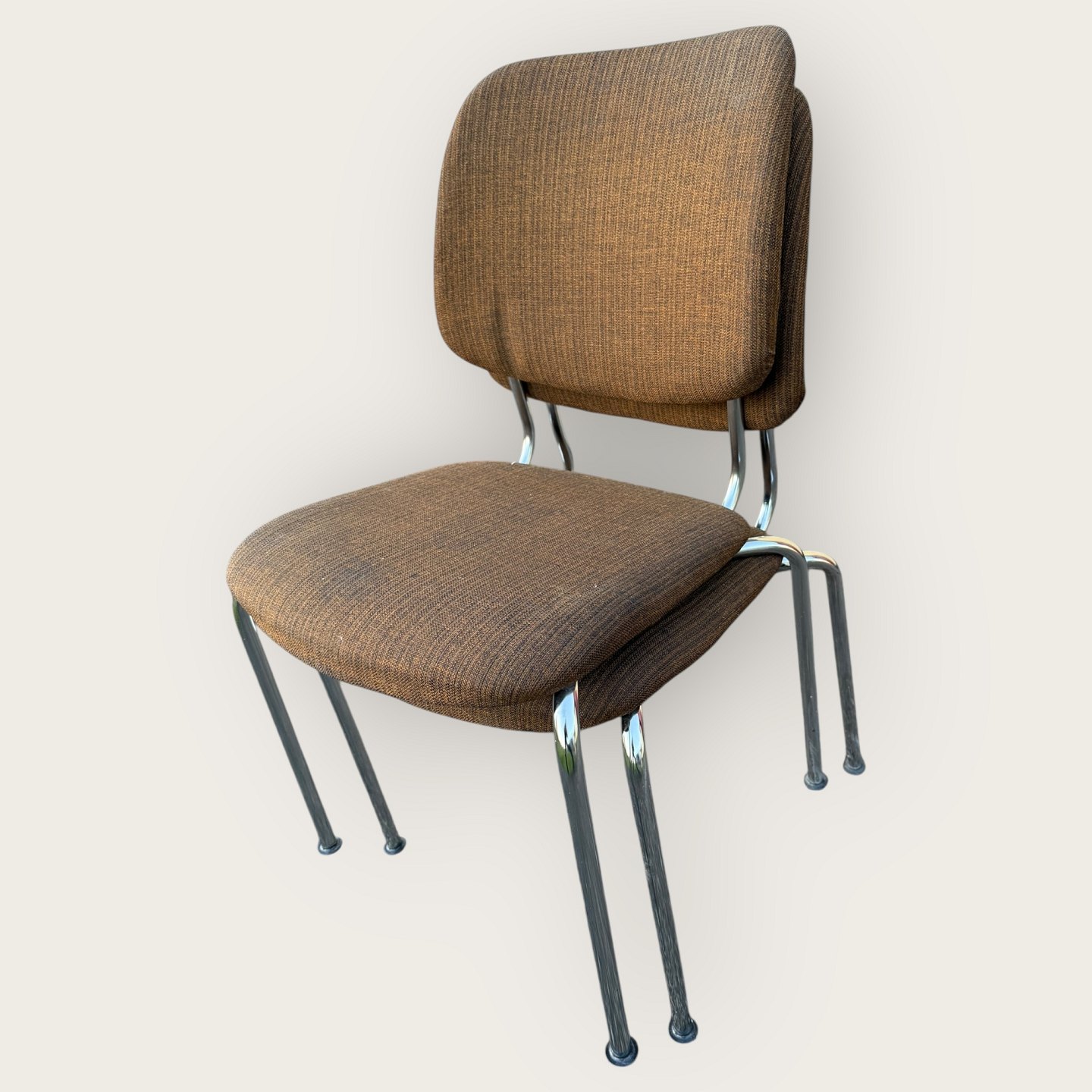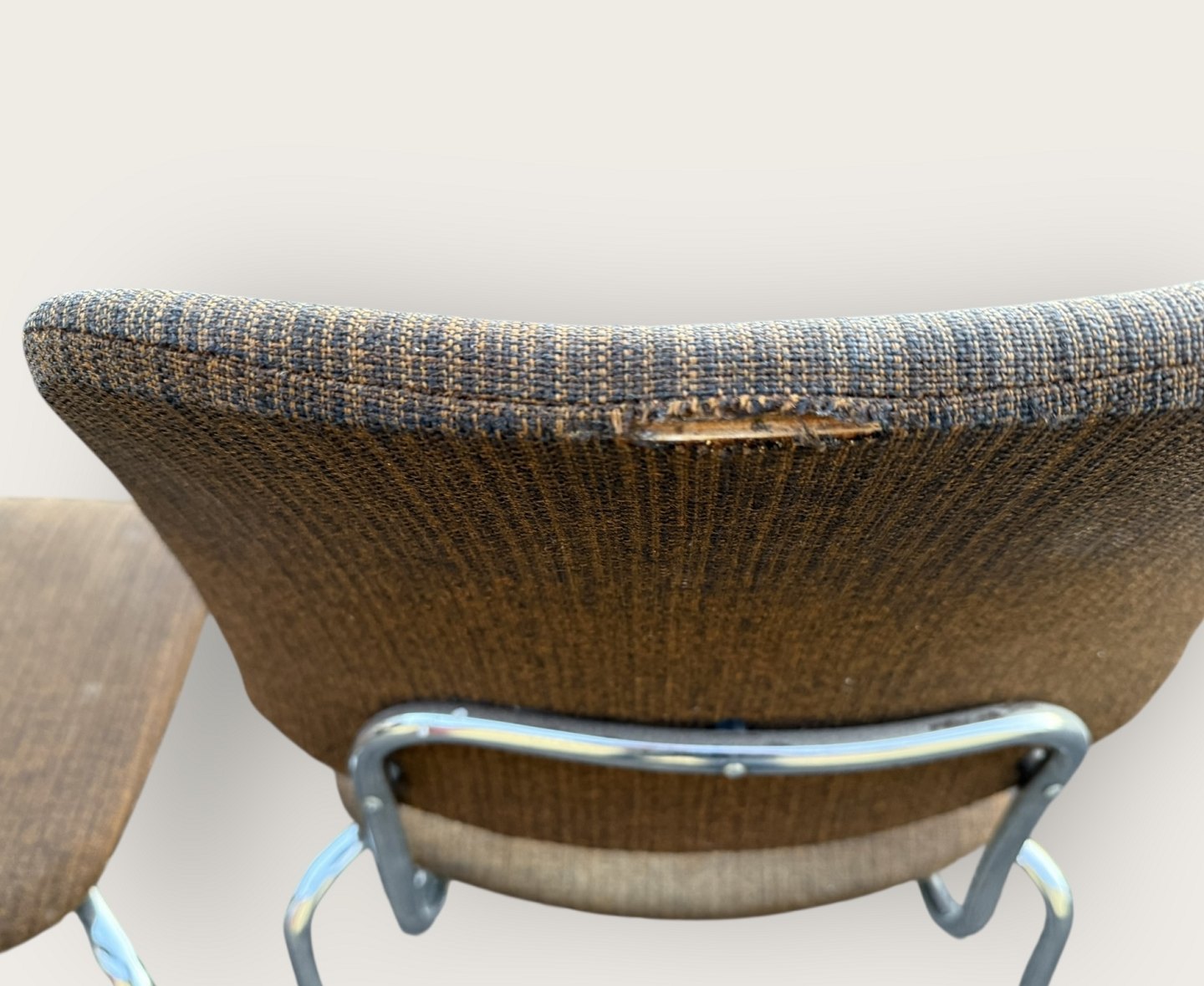 To stole med metalstel og stofbetræk, fra 1950-1970'erne, Stellene i fin stand, betræk med brugsspor.