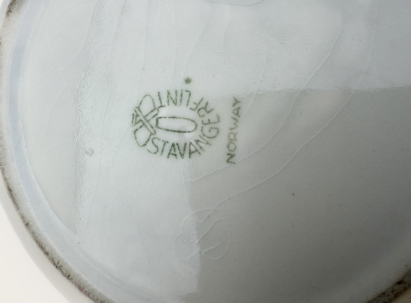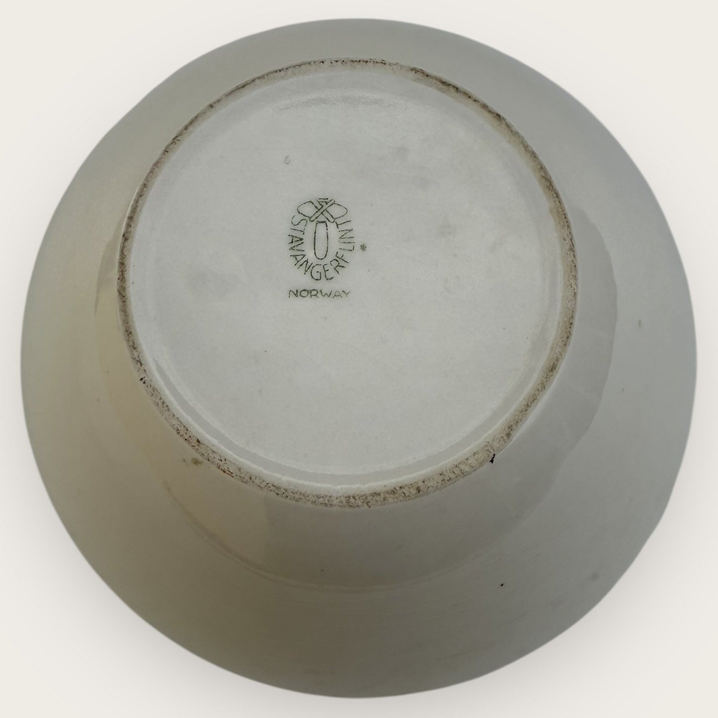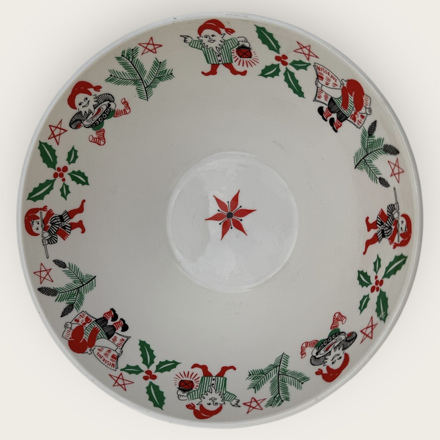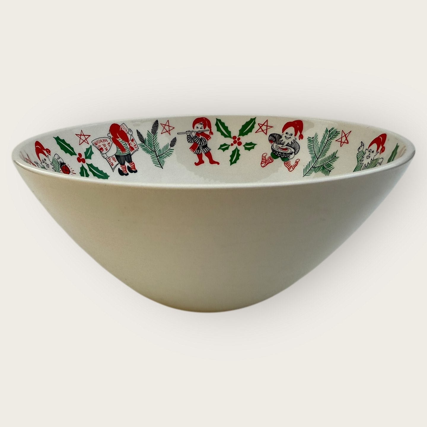 Stavanger Flint, Norge, Serverings skål med nisser, 21cm i diameter og 9,5cm høj *Lidt krakeleringer under glasuren ellers pæn stand*
