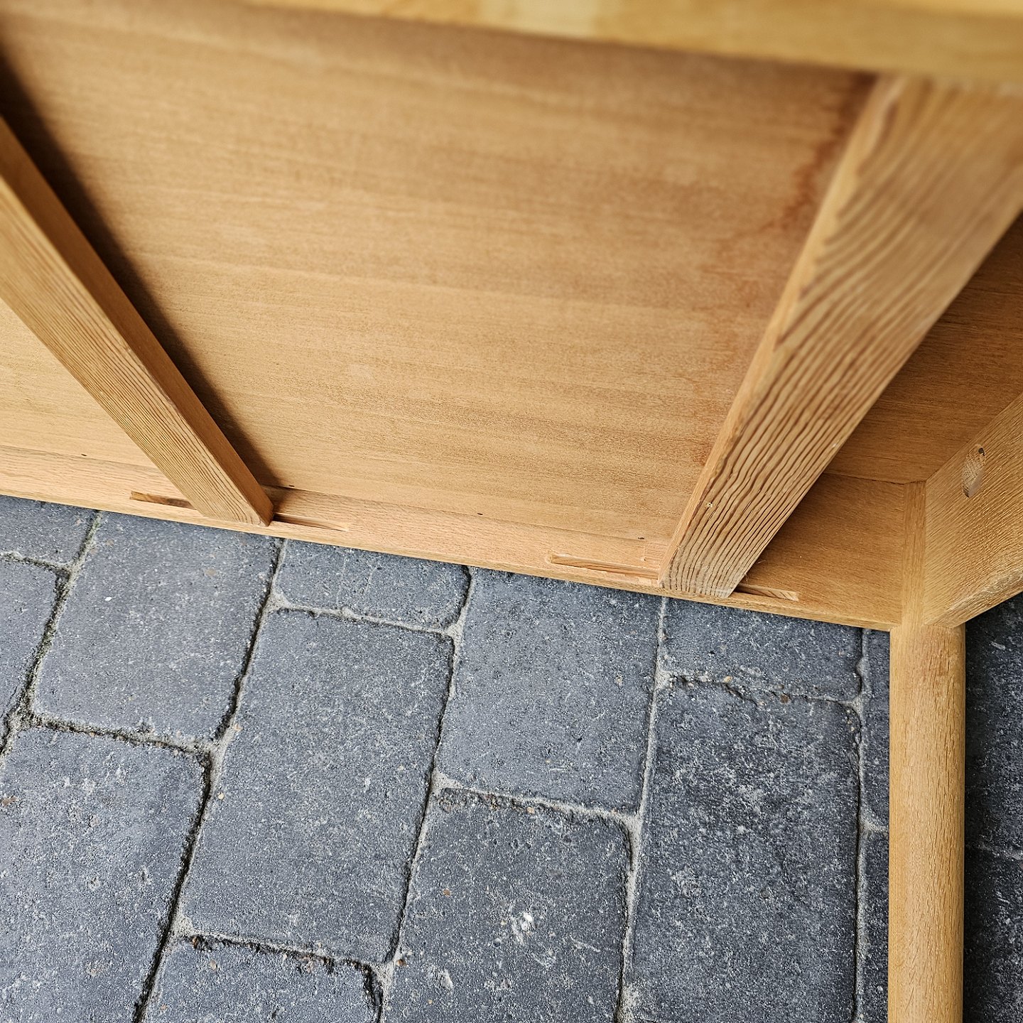 Skrivebord i egetræ med stor skuffe og lås, også kaldet dameskrivebord