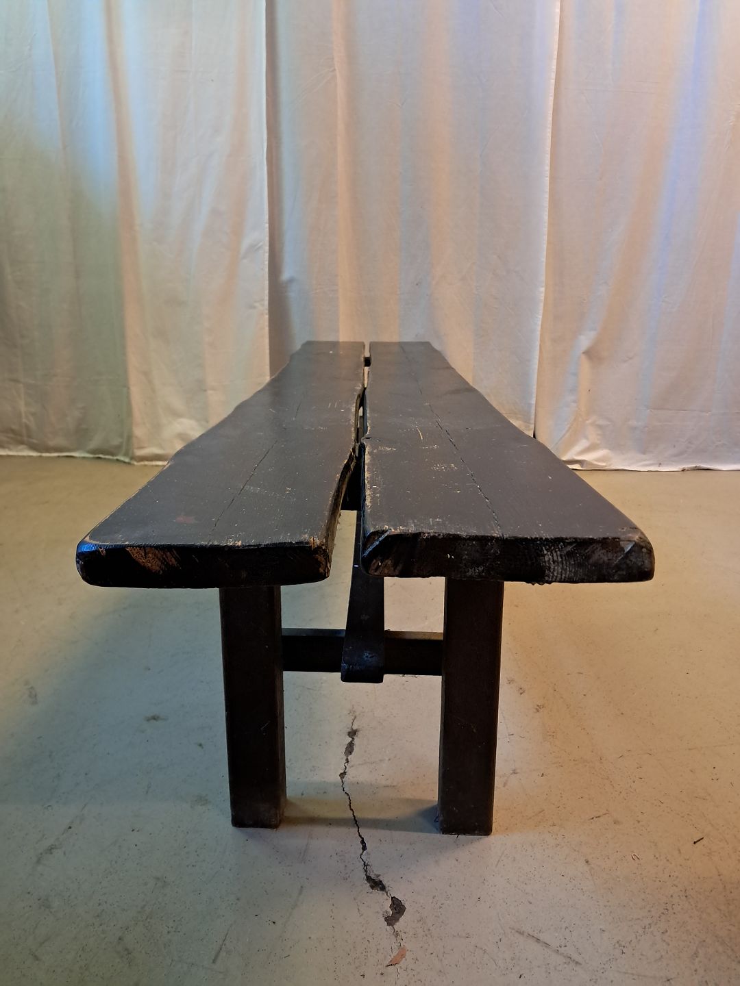 Malet bænk i massivt Fyrre og egetræ, fra 1950erne.