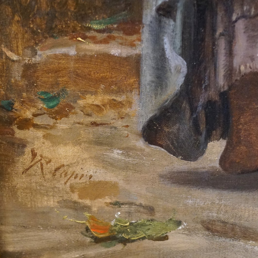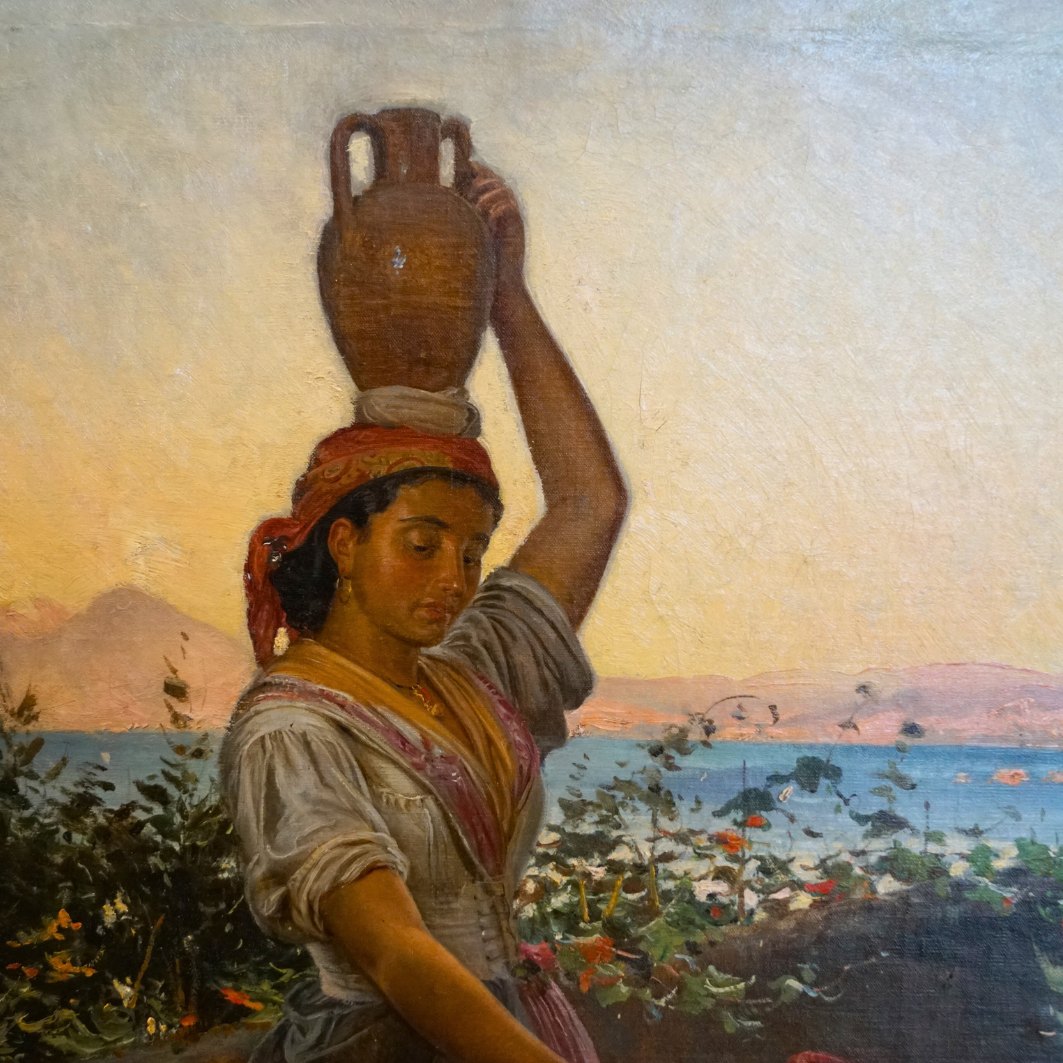 Vilhelm Rosenstand; Oliemaleri med kvinde og barn, motiv fra Italien. Olie på lærred. Signeret.