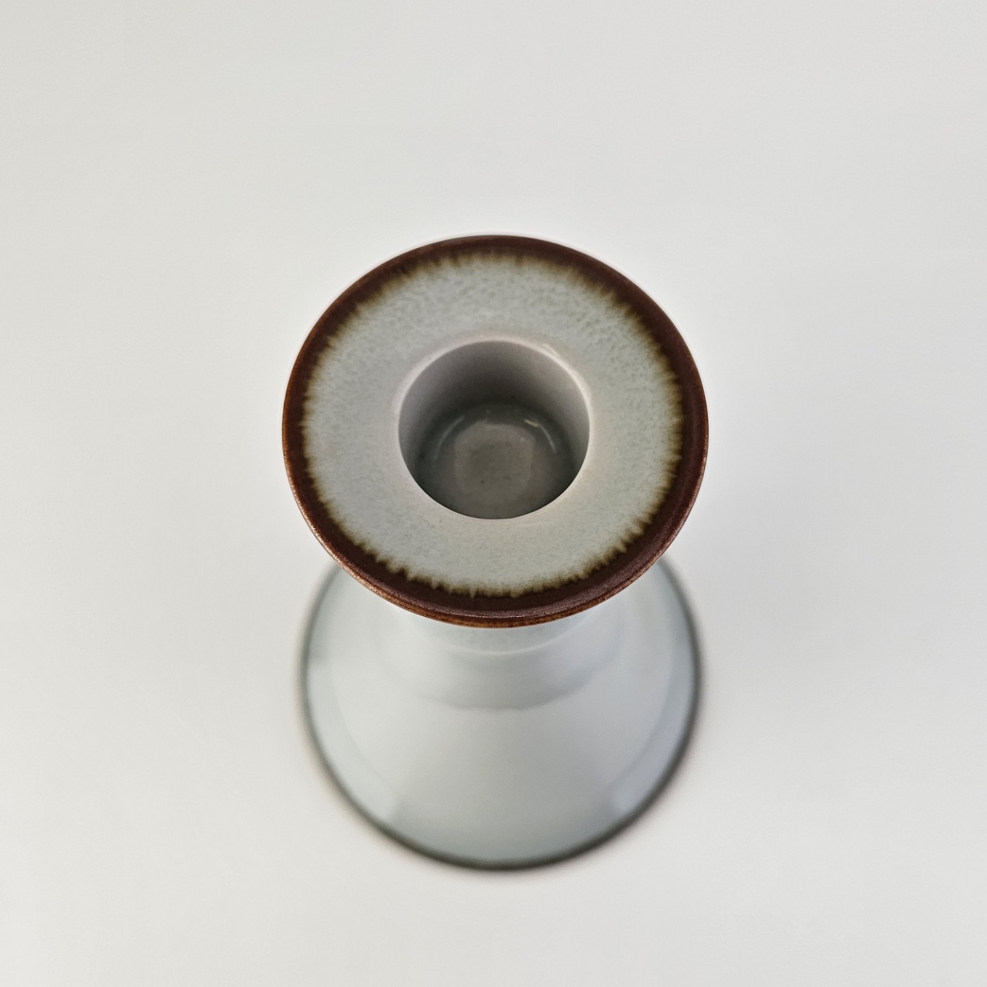 Diskos er af ovnfast stentøj. Stellet er gråt og håndmalet med brune og grønlige detaljer