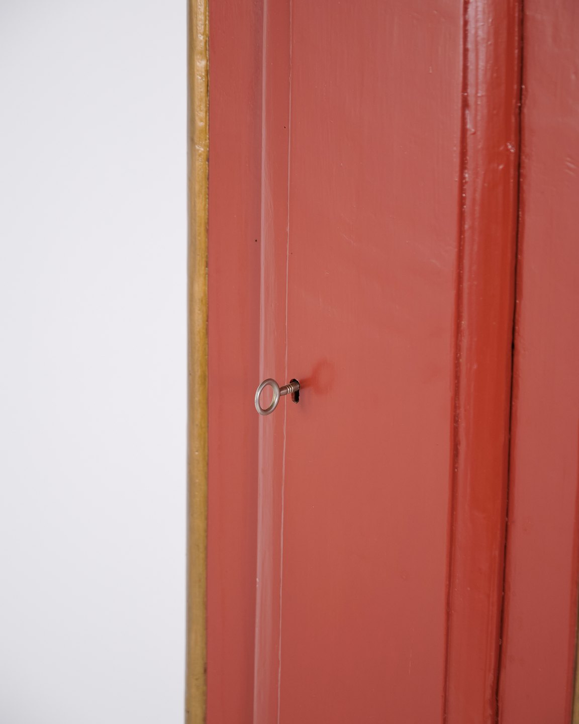 Bornholmerur fra ca. 1820’erne, rødbemalet med dekorative udskæringer og klassisk formsprog fra perioden. Et originalt standerur med karakter og tidsrigtige detaljer.