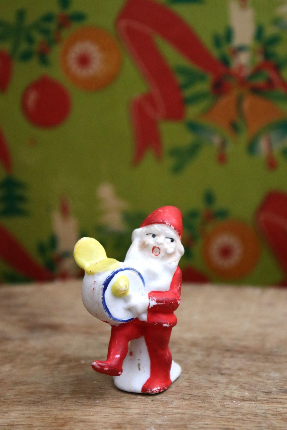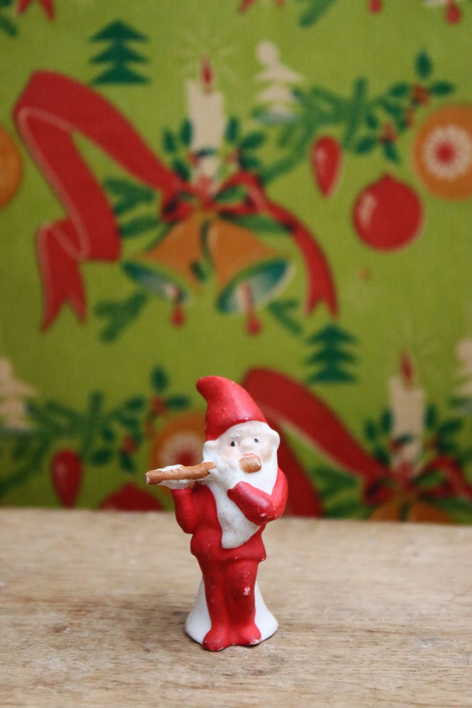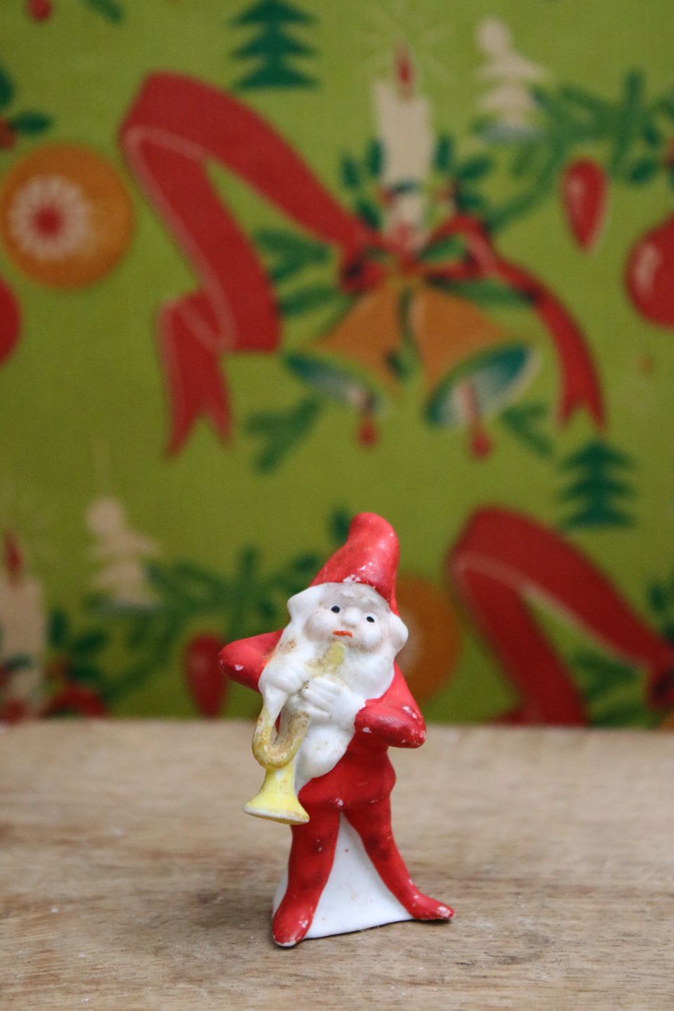 Små gamle biskuit nisser med instrumenter. H: 5,5cm.