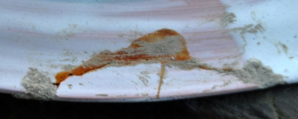 Glud, Jørgen (1913 - 2003) Danmark: keramik fad, 1980. Rødler. Glasur i sort, blå, hvid og grøn. Signeret: J.G. 80. Dia: 37 cm.