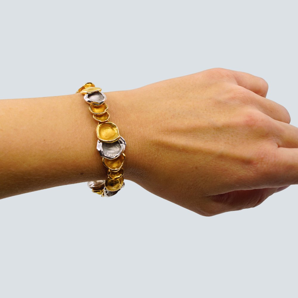C. Antonsen; Leddelt armbånd i 14 kt. guld og hvidguld
