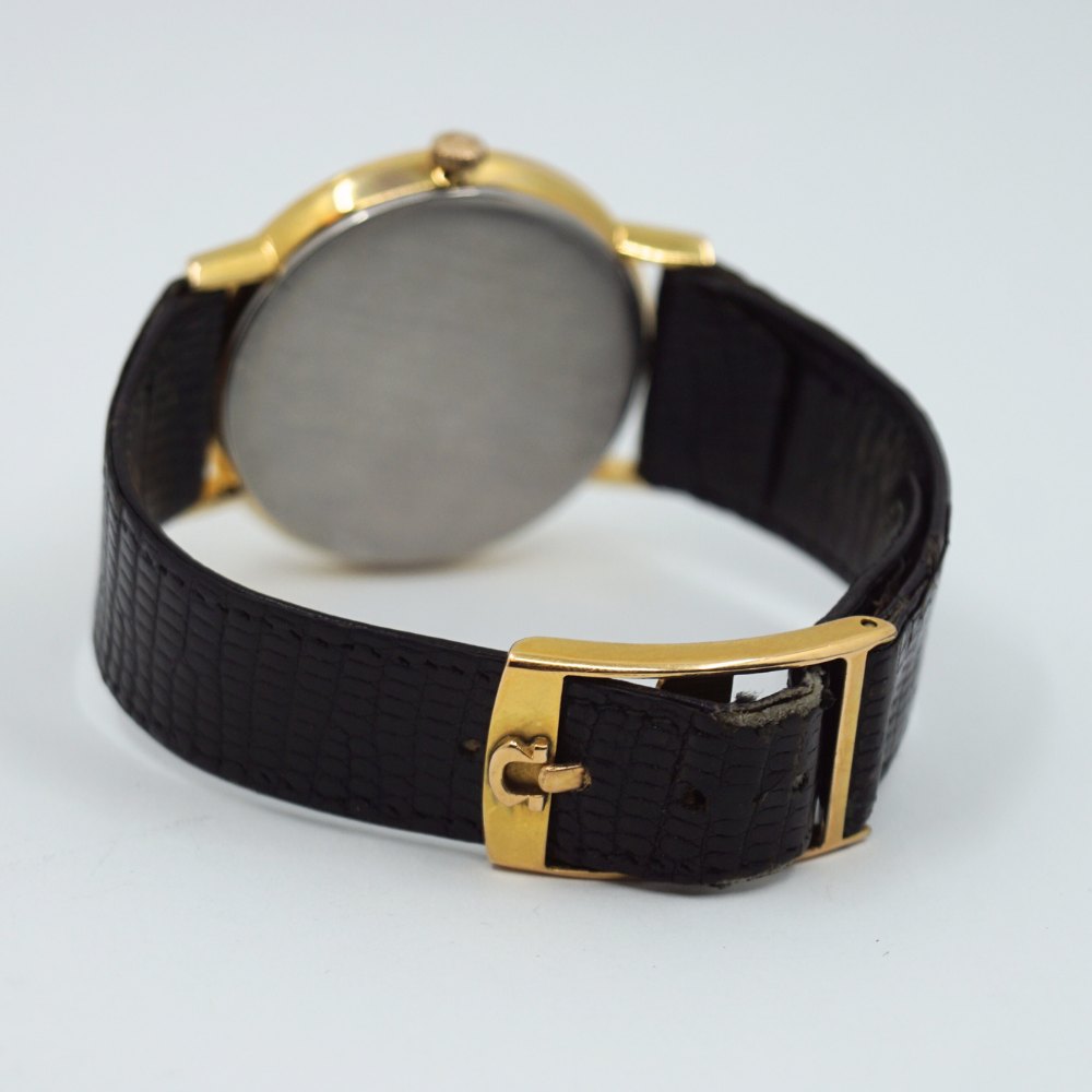 Omega armbåndsur, i stål med guld. Ref. 132-019. Cal: 611. Omega herreur årgang 1965. Automatic. Diameter 34 mm. Med sort læderrem og original spænde.