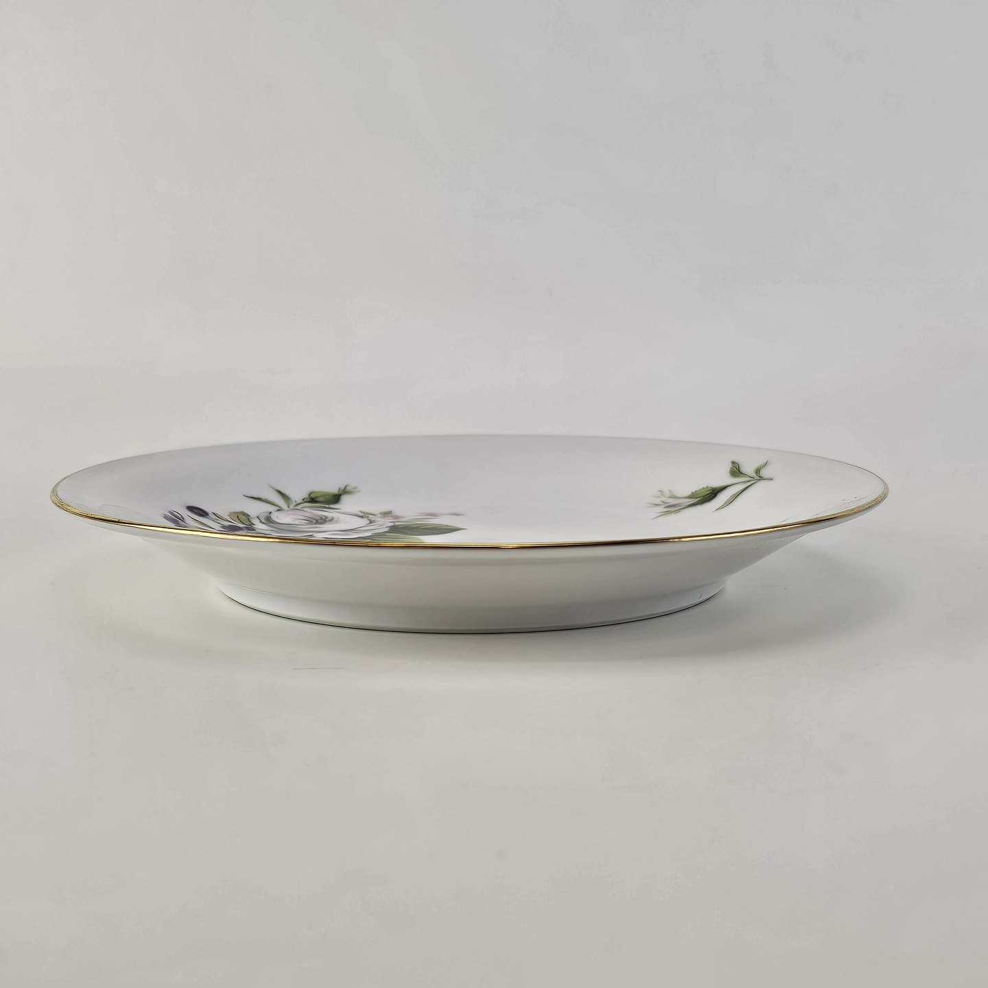 Paris er porcelæn med guldkant og motiv af hvide roser og violer