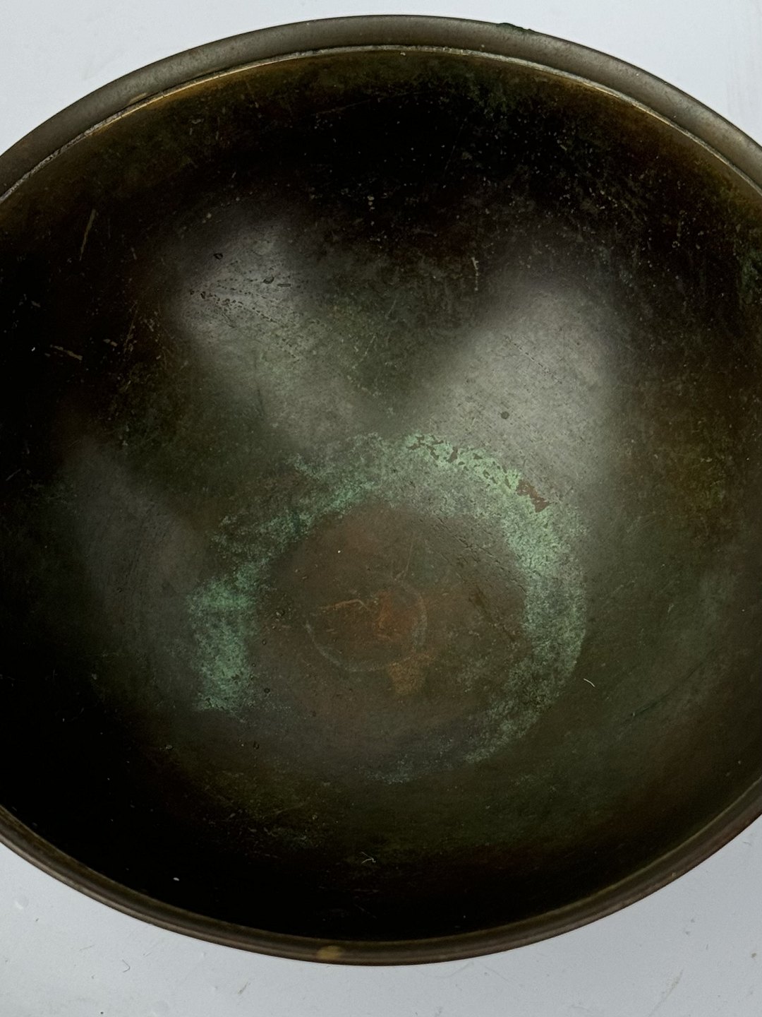 Just Andersen Let Bronze (LB). bronzepatineret skål på fod. Fremstillet på fabrikken omkring 1940. I god stand med få brugsspor. Fabriksmærket på bunden med det velkendte logo samt modelnummer LB 1337. Mål: H. 6 cm