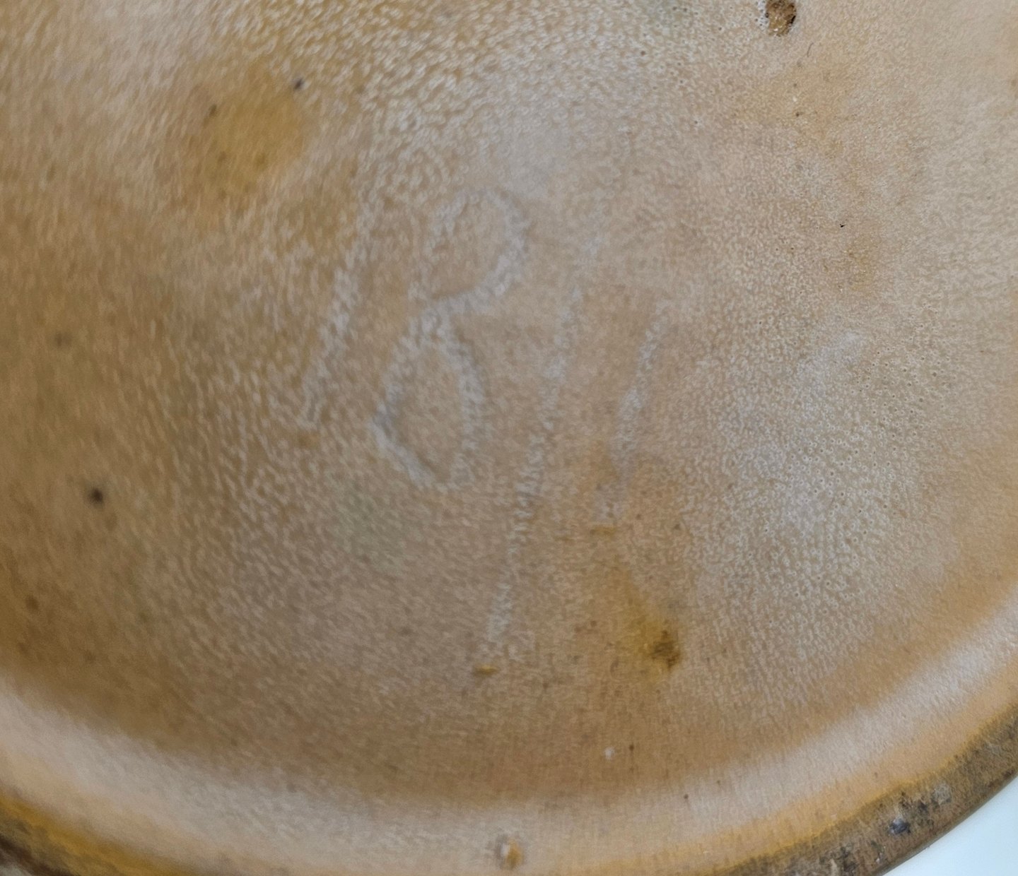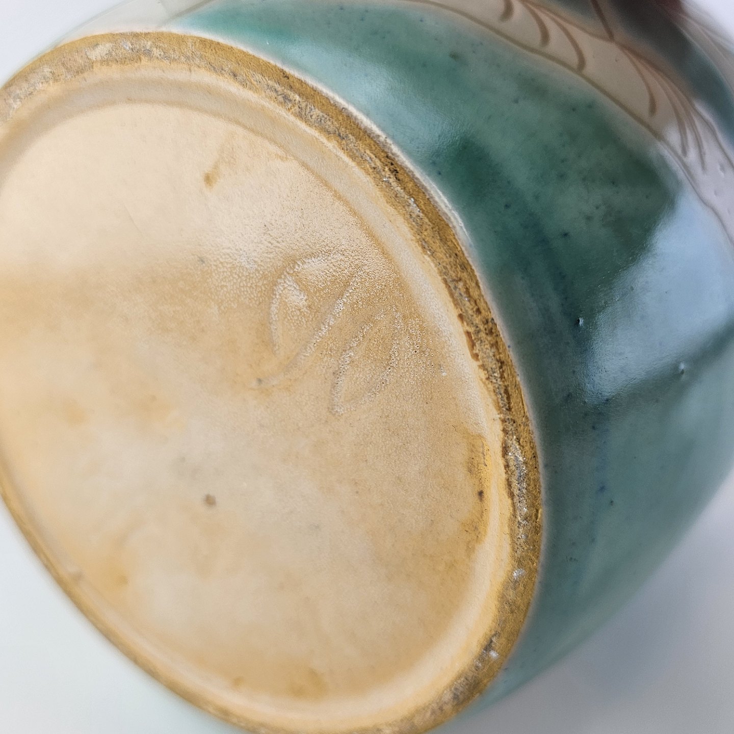 Bordlampe i hvid keramik med dekoration i blå og sort fatning