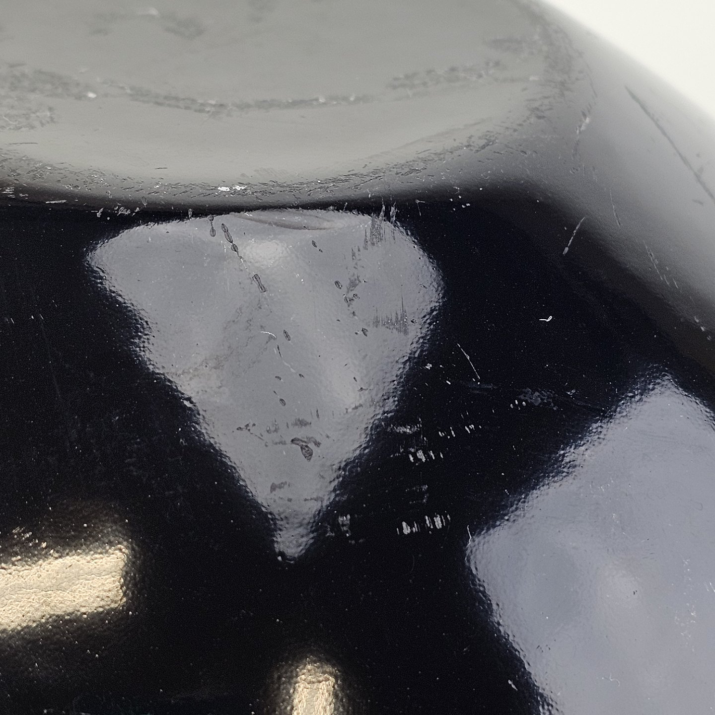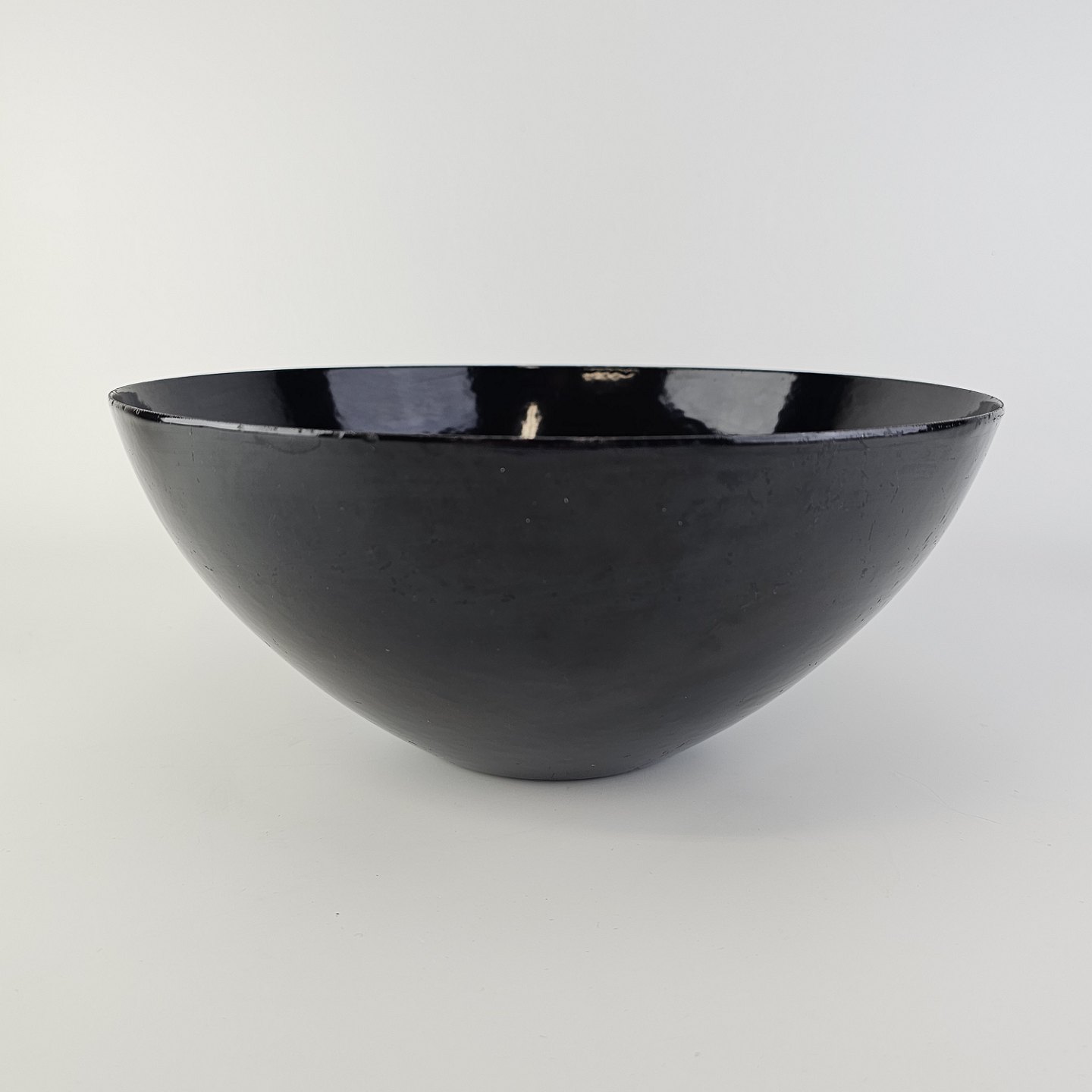 Krenit skål af sort metal med sort emalje indvendigt og udvendigt