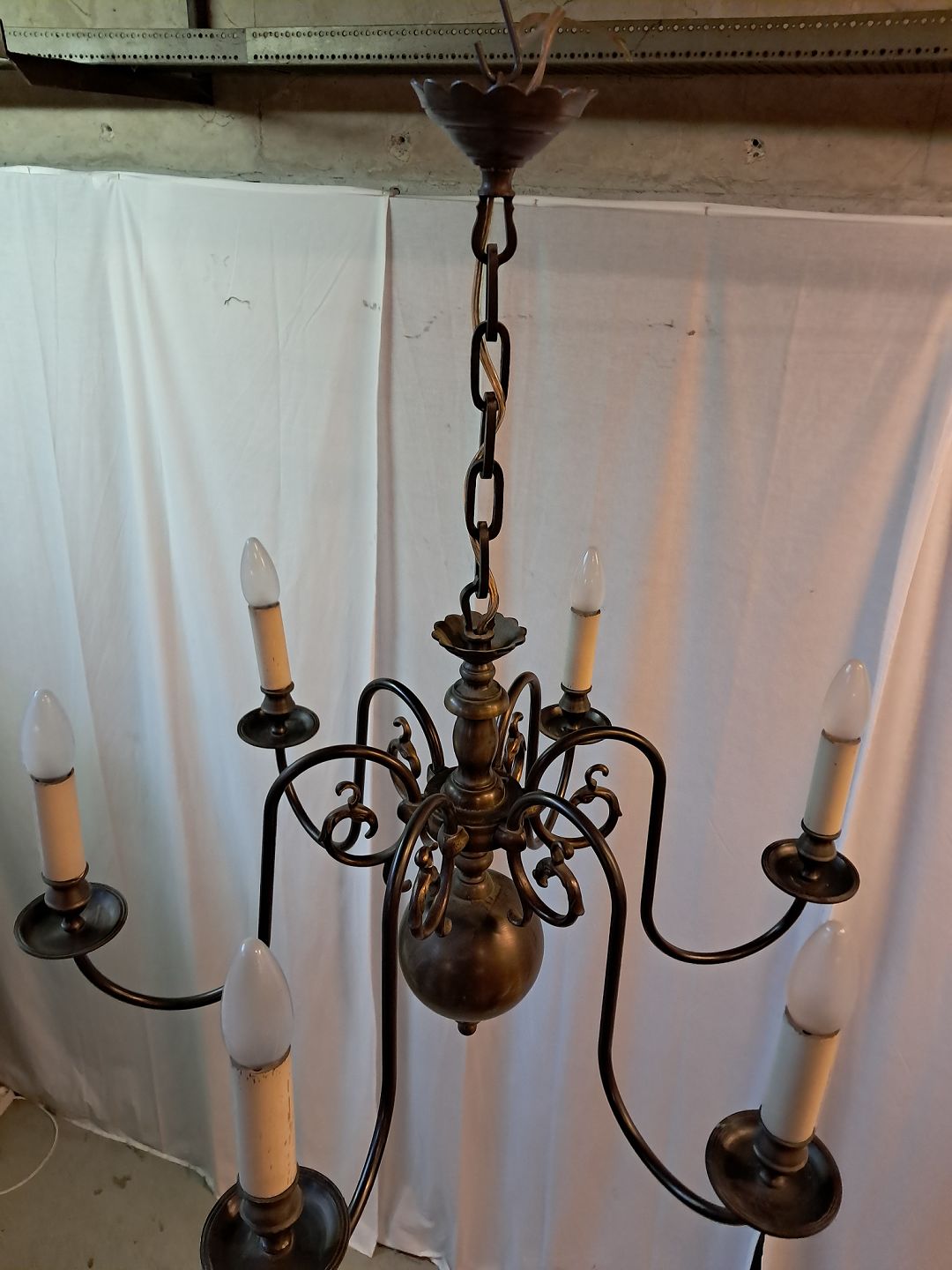6-armet kirkekrone i bruneret messing, fra 1930erne.